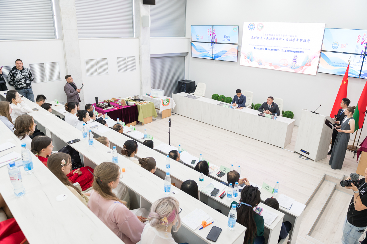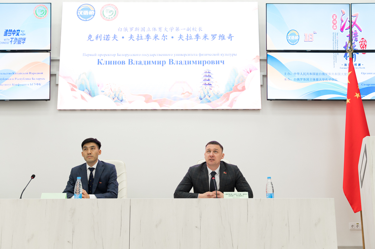 В финальном этапе конкурса с приветственными словами выступили первый проректор БГУФК Владимир Владимирович Клинов и третий секретарь отдела по делам науки, образования и культуры Посольства Китайской Народной Республики в Республике Беларусь Цзя Вэй. Почётные гости подчеркнули важность этого мероприятия для укрепления дружбы и сотрудничества между нашими странами.
