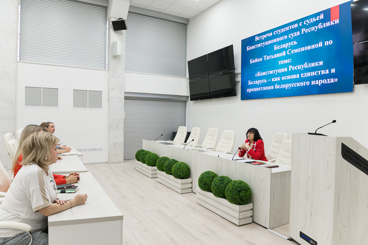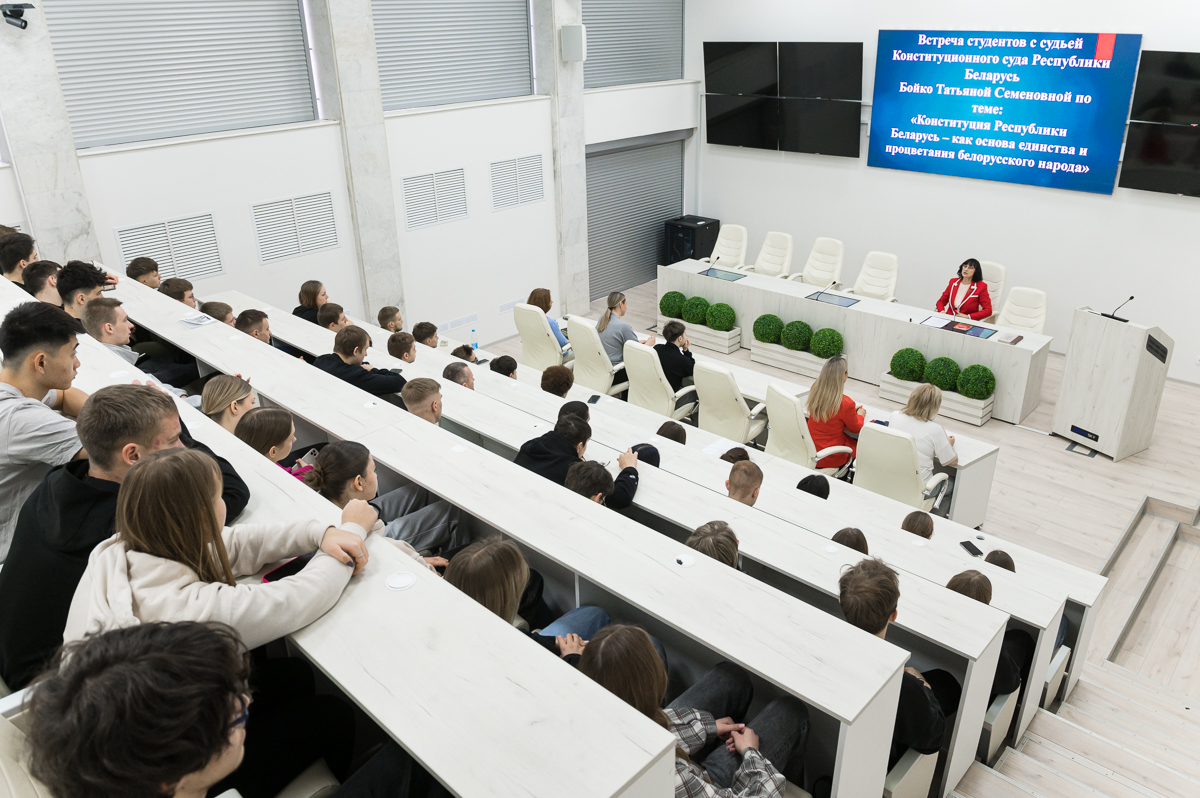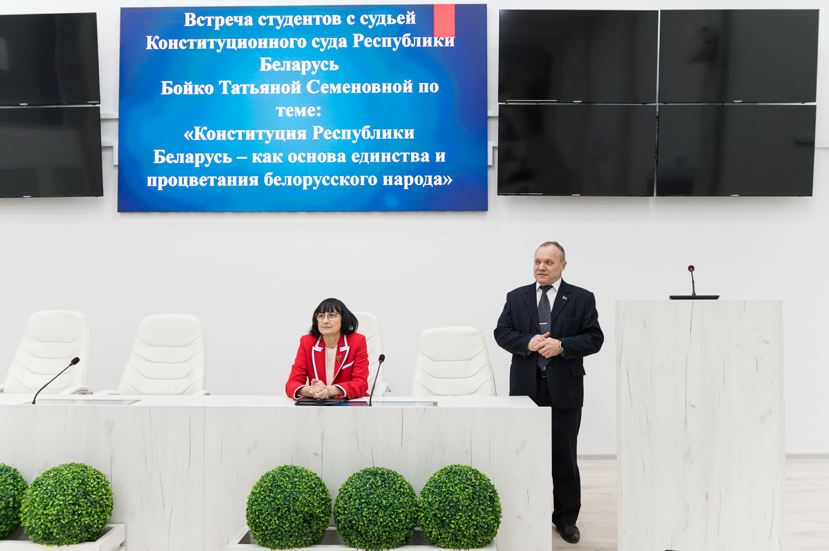 4 марта 2025 года в университете в рамках Дня Конституции Республики Беларусь прошла диалоговая площадка «Конституция Республики Беларусь – как основа единства и процветания белорусского народа», спикером которой выступила судья Конституционного суда Татьяна Семеновна Бойко.