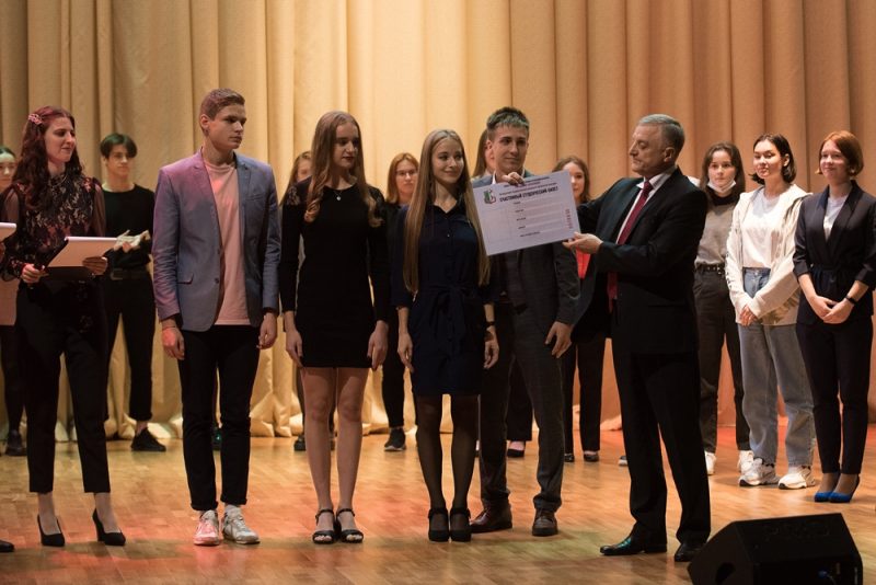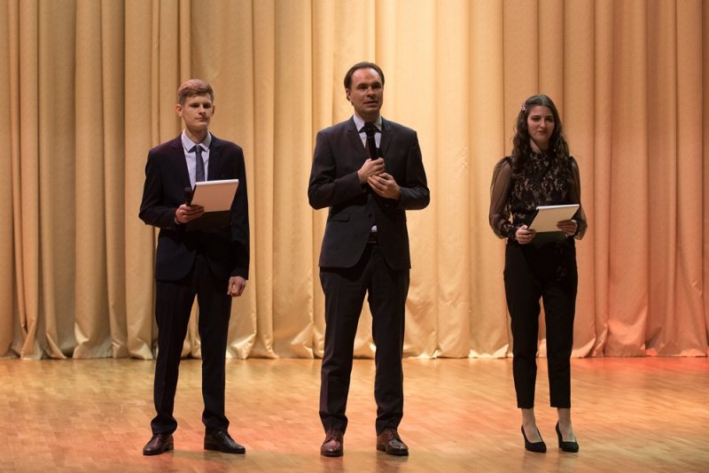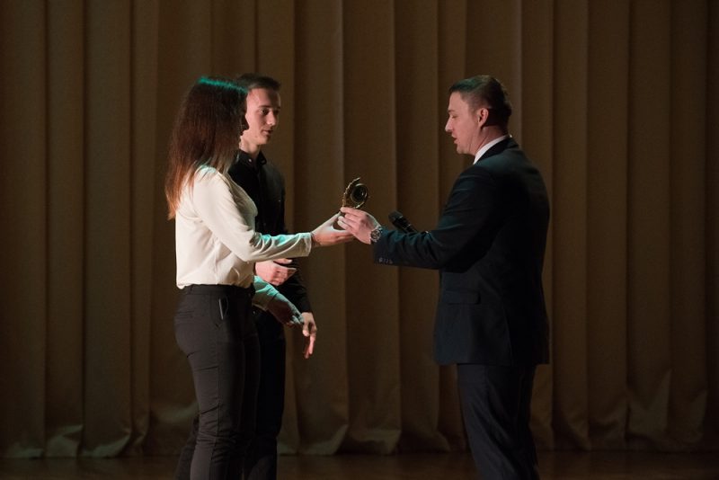 Долгожданный гала-концерт первокурсников – победителей отборочных туров конкурсной программы мероприятия состоялся по окончании торжественной части Церемонии. Обладатели титула «Лучший молодёжный проект», студенты группы 114 с первых мгновений выступления создали неповторимую творческую атмосферу. Эстафету неудержимой фантазии, лёгкости, непринуждённости и молодого задора подхватили лучшие из лучших музыкантов, вокалистов, хореографов и актёров первого курса, представив зрителю насыщенную концертную программу, включившую в себя практически все жанры исполнительского мастерства. Особый восторг аудитории вызвал философский трактат сценического формата группы 416 и шедевральное взаимодействие группы 214 со своим куратором И.А.Костенко, дистанционно руководящей выступлением посредством онлайн-трансляции. Отметим значительный вклад педагогов университета М.И.Дворякова, Е.В.Горальчук, А.Н.Анисима, И.П.Протасевич, осуществлявших постоянный контроль и оказавших неоценимую помощь своим первокурсникам в репетиционный период.