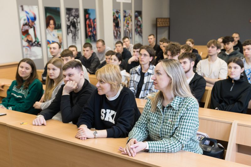 Александр Анатольевич обозначил, что Победа в Великой Отечественной войне всегда будет вызывать гордость за подвиг наших предков, за их героизм и самоотверженность в борьбе с врагом. Он обратил внимание на то, что 80 лет назад была одержана великая Победа советского народа в Великой Отечественной войне: «Мы чтим память тех, кто дал нам светлое небо над головой и возможность достигать больших спортивных рекордов». В завершении встречи Александр Анатольевич сказал напутственные слова своего тренера, Заслуженного деятеля физической культуры БССР Эрнеста Владимировича Асиевского: «Падая и вставая мы растем. Не бойтесь упасть, бойтесь не встать».