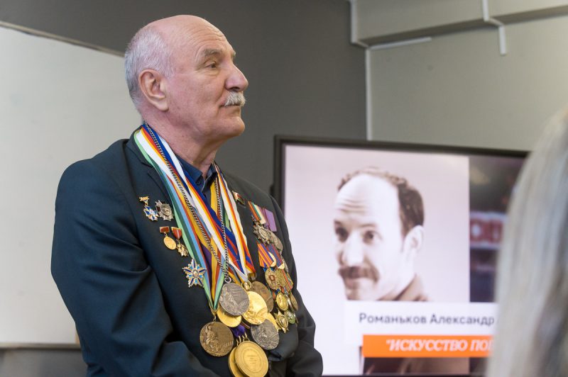 В ходе общения Александр Анатольевич поделился вдохновляющей спортивной историей своего чемпионского пути, преодолением трудностей и о том, как важно верить в себя и в свою Родину для достижения больших успехов. С теплом и нежностью Александр Анатольевич рассказал про свою большую и дружную семью, про родственников, которые участвовали в Великой Отечественной войне, а также о своих достижениях в тренерской деятельности. В своей истории герой встречи отметил, что каждый успех достигается благодаря упорству, вере в себя, поддержке тренера, близких и родных.