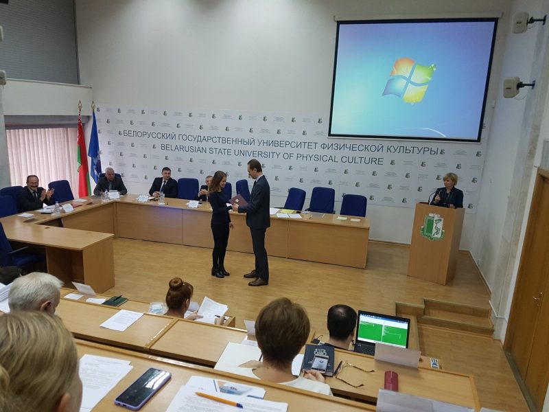 Ректор БГУФК Сергей Борисович Репкин вручил свидетельство о назначении стипендии Президента Республики Беларусь студентке факультета ОФК, кафедры лечебной физической культуры и физической культуры дошкольников Матюк Анастасии.В 2020 году работы молодых ученых БГУФК приняли участие в международных олимпиадах и конкурсах, проводимых Международным союзом экономистов и финансистов (Москва, Российская Федерация).
