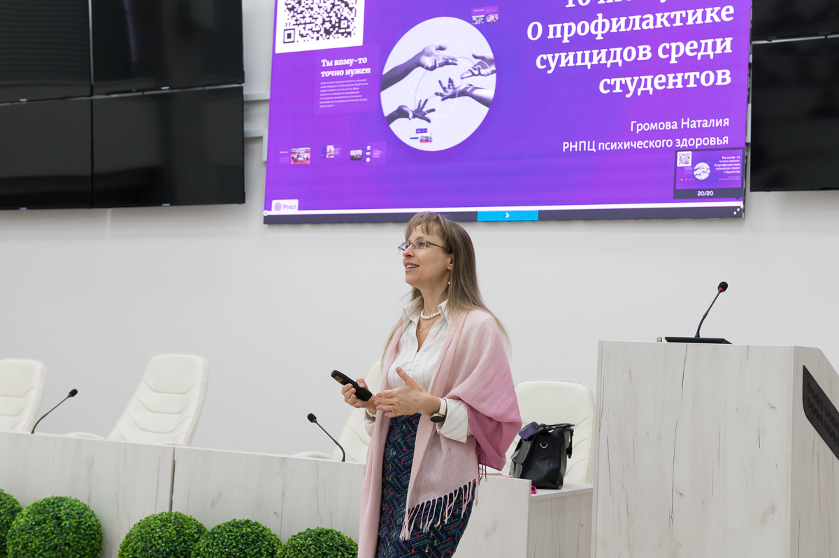 Наталия Владимировна рассказала, что за последнее десятилетие число самоубийств среди молодежи выросло в 3 раза. Основные причины: неразделенная любовь, конфликты с родителями и сверстниками, страх перед будущим, одиночество. К сожалению, самоубийства уже становятся типичной реакцией молодых людей на кризисные ситуации в их жизни. Спикер отметила, что профилактика суицидального поведения является сегодня одной из базисных задач современного общества.