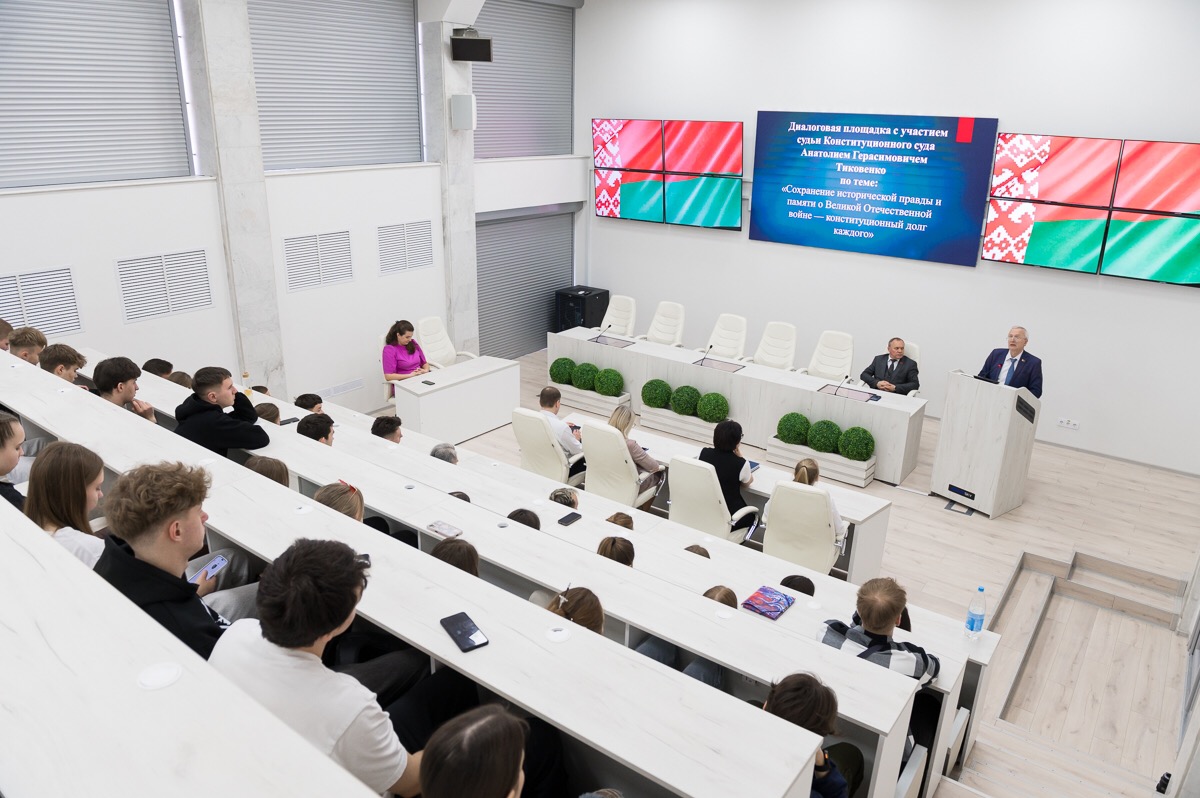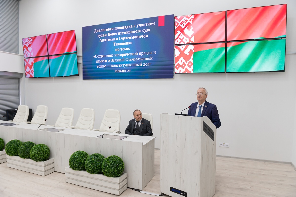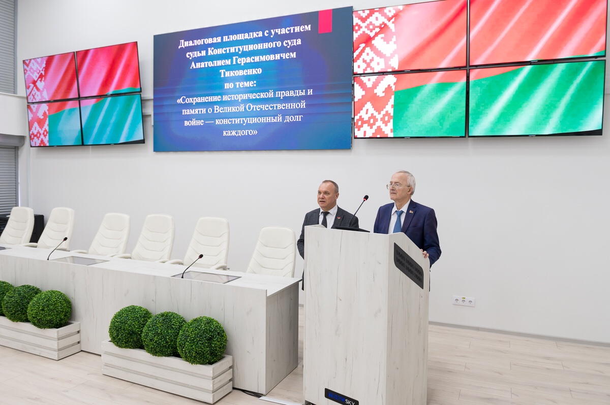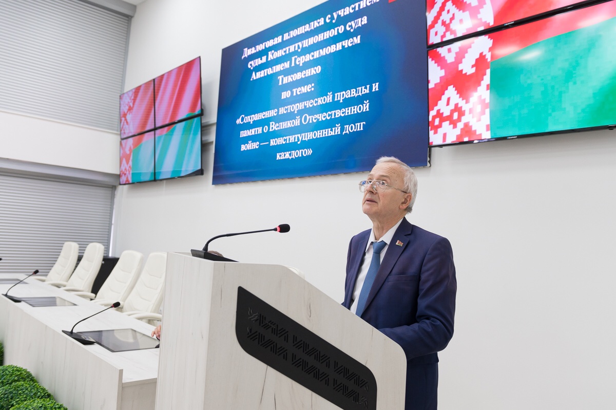 В БГУФК состоялась диалоговая площадка с участием судьи Конституционного Суда Республики Беларусь Анатолием Герасимовичем Тиковенко на тему: «Сохранение исторической правды и памяти о Великой Отечественной войне — конституционный долг каждого».