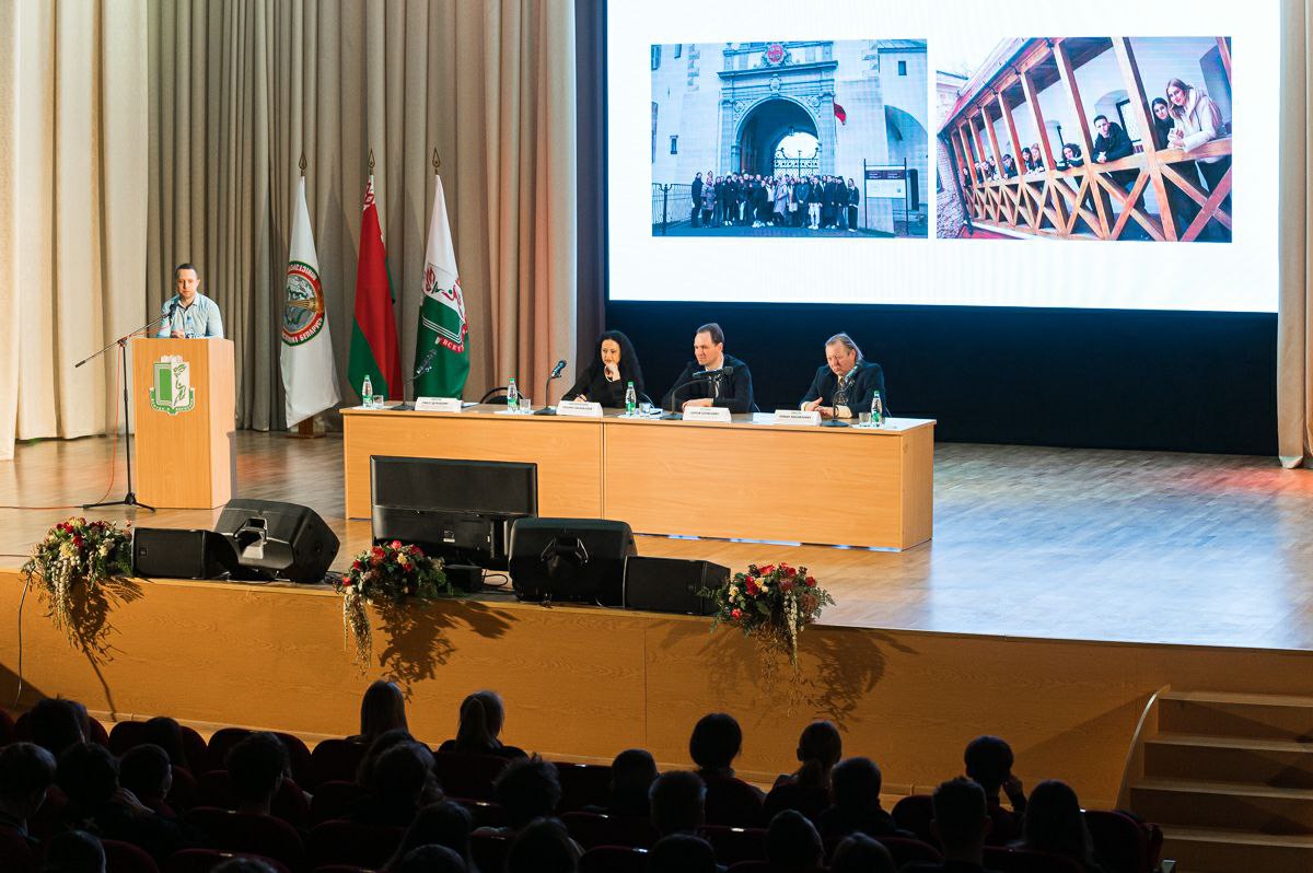 В качестве членов президиума в работе конференции приняли участие заместитель председателя Федерации профсоюзов Беларуси, Председатель Белорусского профсоюза работников культуры, информации, спорта и туризма Татьяна Васильевна Филимонова, ректор университета Сергей Борисович Репкин, председатель профкома преподавателей и работников университета Роман Михайлович Хмель, председатель профкома студентов университета Павел Эдуардович Корсак.