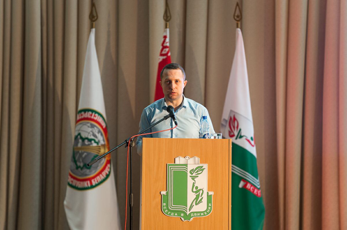 Во время конференции председатель профкома студентов университета Павел Эдуардович Корсак зачитал доклад о работе профсоюзного комитета студентов университета за период с 3 марта 2019 г. по 28 февраля 2024 г.