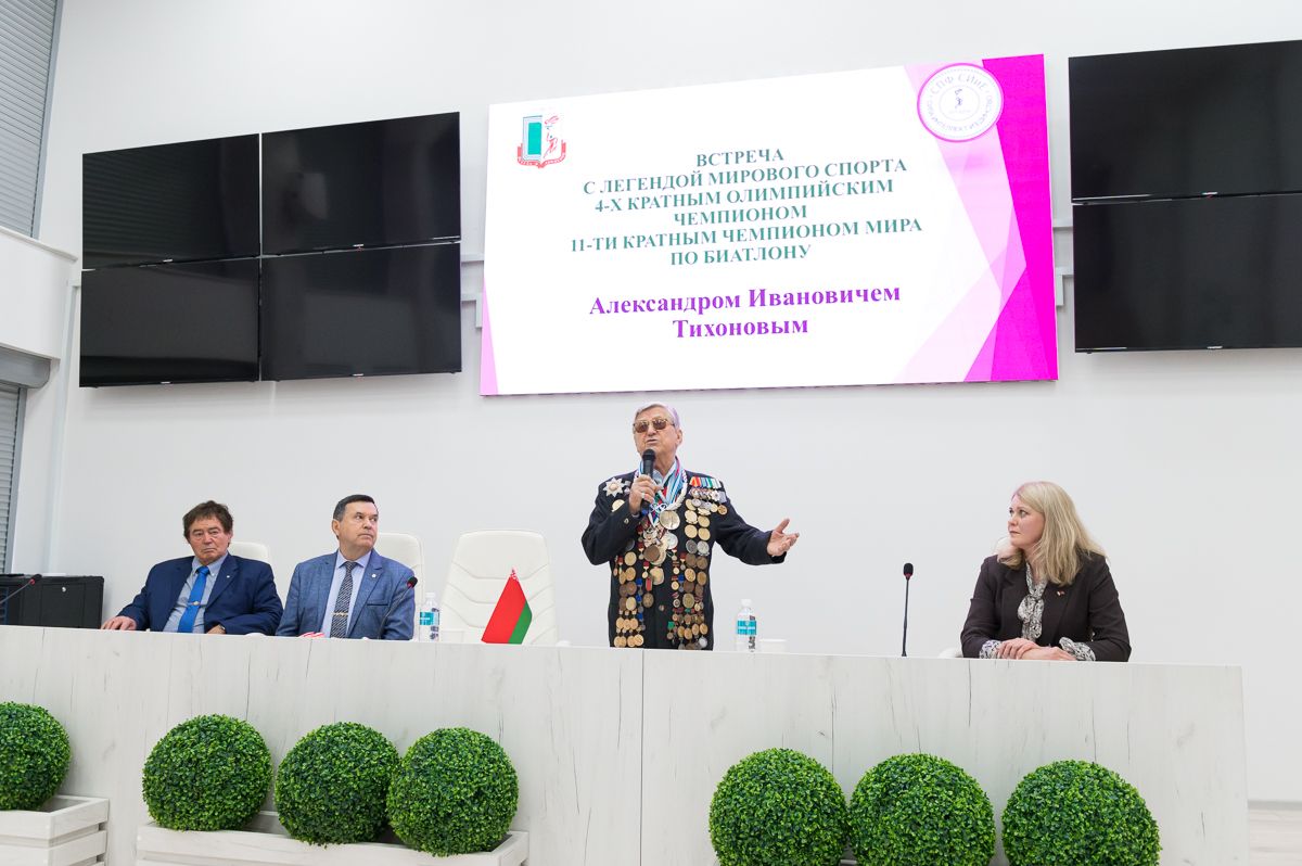 29 сентября 2025 года в Зале совета БГУФК состоялась встреча с 4-х кратным олимпийским чемпионом, 11-ти кратным чемпионом мира, 15-ти кратным чемпионом СССР, Заслуженным мастером спорта СССР по биатлону Александром Ивановичем Тихоновым.