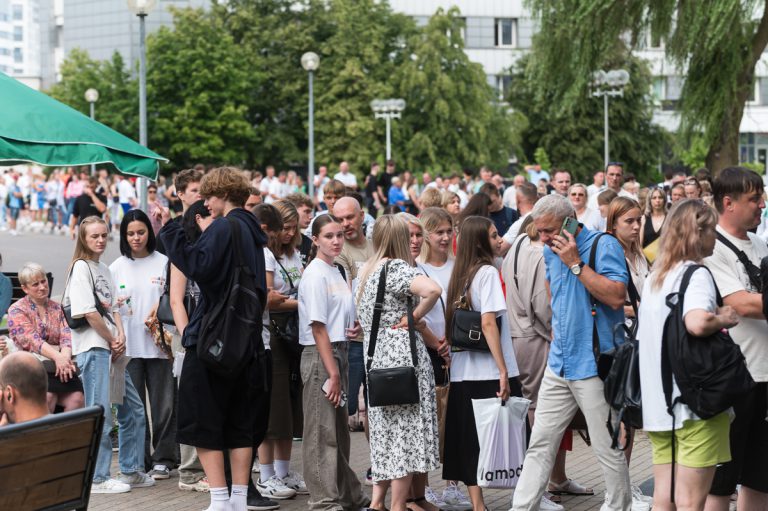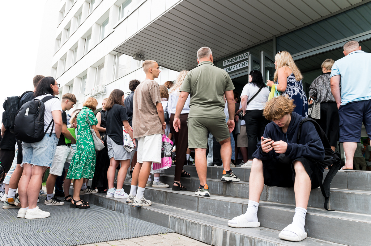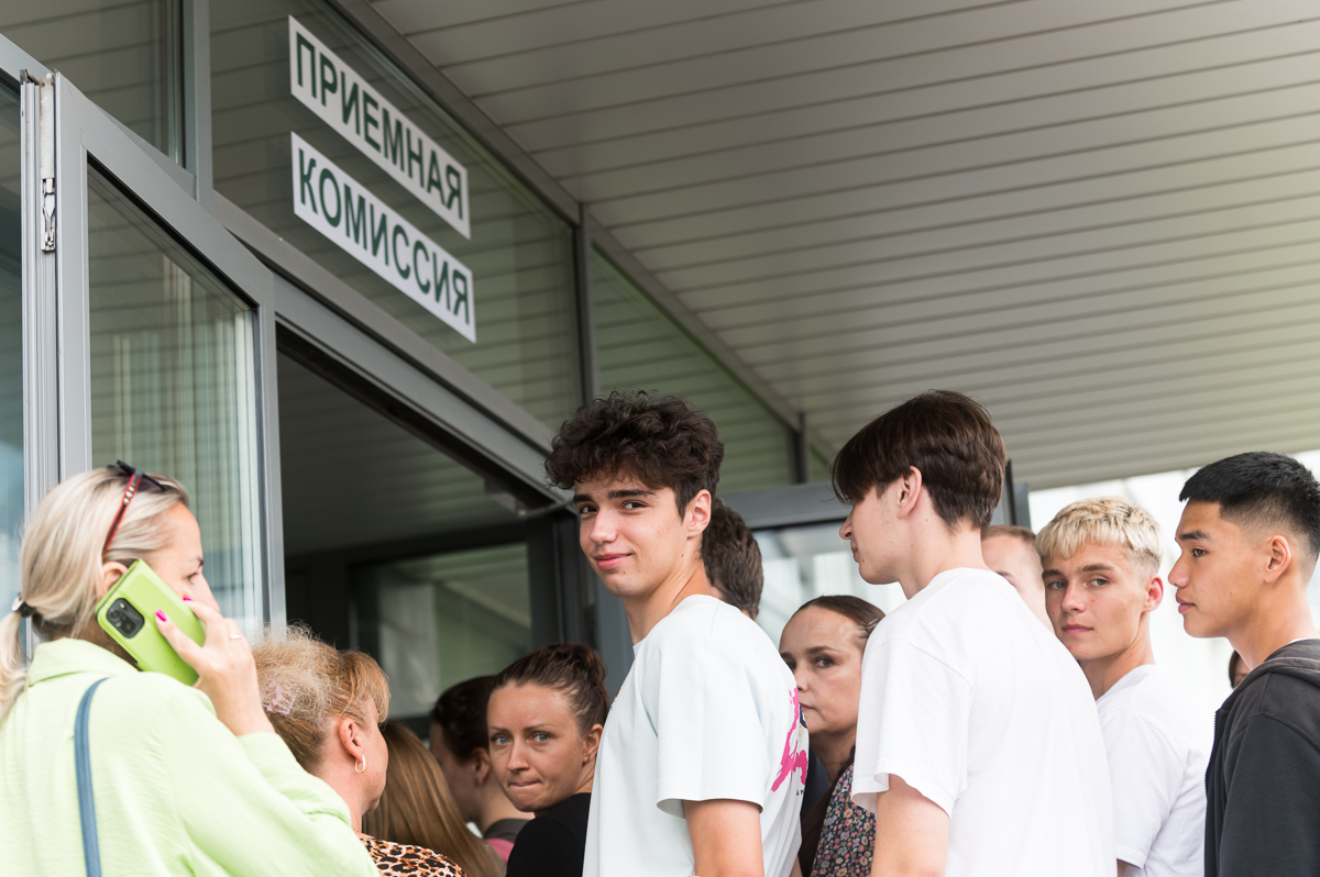 Поступающие со своими родителями и близкими, несмотря на 30-ти градусную жару, уже с самого утра выстроились в очередь, чтобы стать абитуриентами самого спортивного вуза страны.