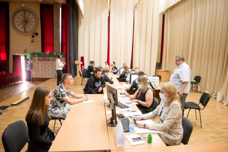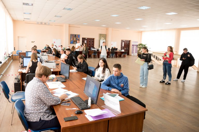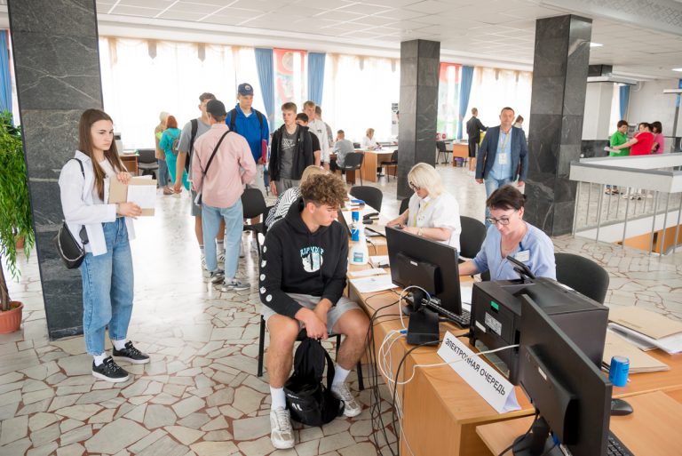 Согласно номеру электронной очереди девушек и юношей приглашает информационная комиссия – проверить перечень необходимых документов, после абитуриентам нужно зарегистрировать медицинские справки, сфотографироваться. Заключительный этап – встреча с факультетской комиссией.