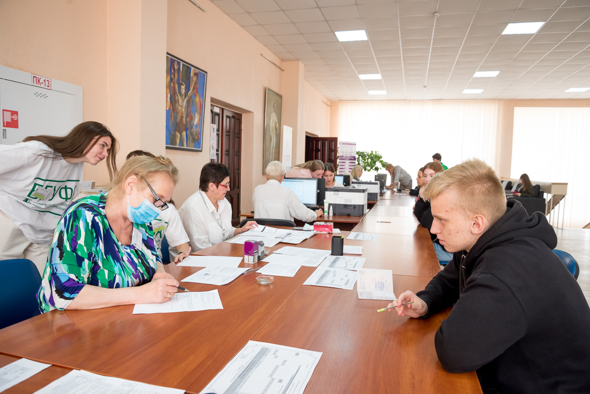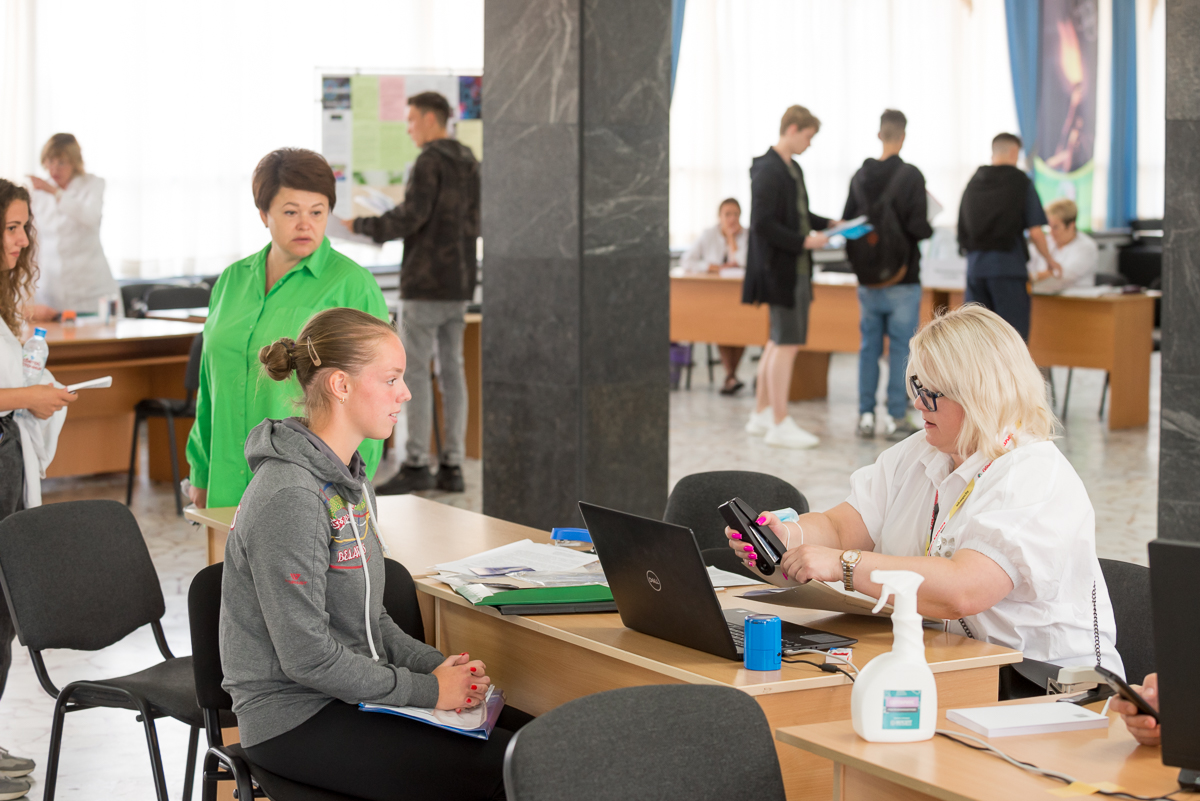 Согласно номеру электронной очереди девушек и юношей приглашает информационная комиссия – проверить перечень необходимых документов, после абитуриентам нужно зарегистрировать медицинские справки, сфотографироваться. Заключительный этап – встреча с факультетской комиссией.