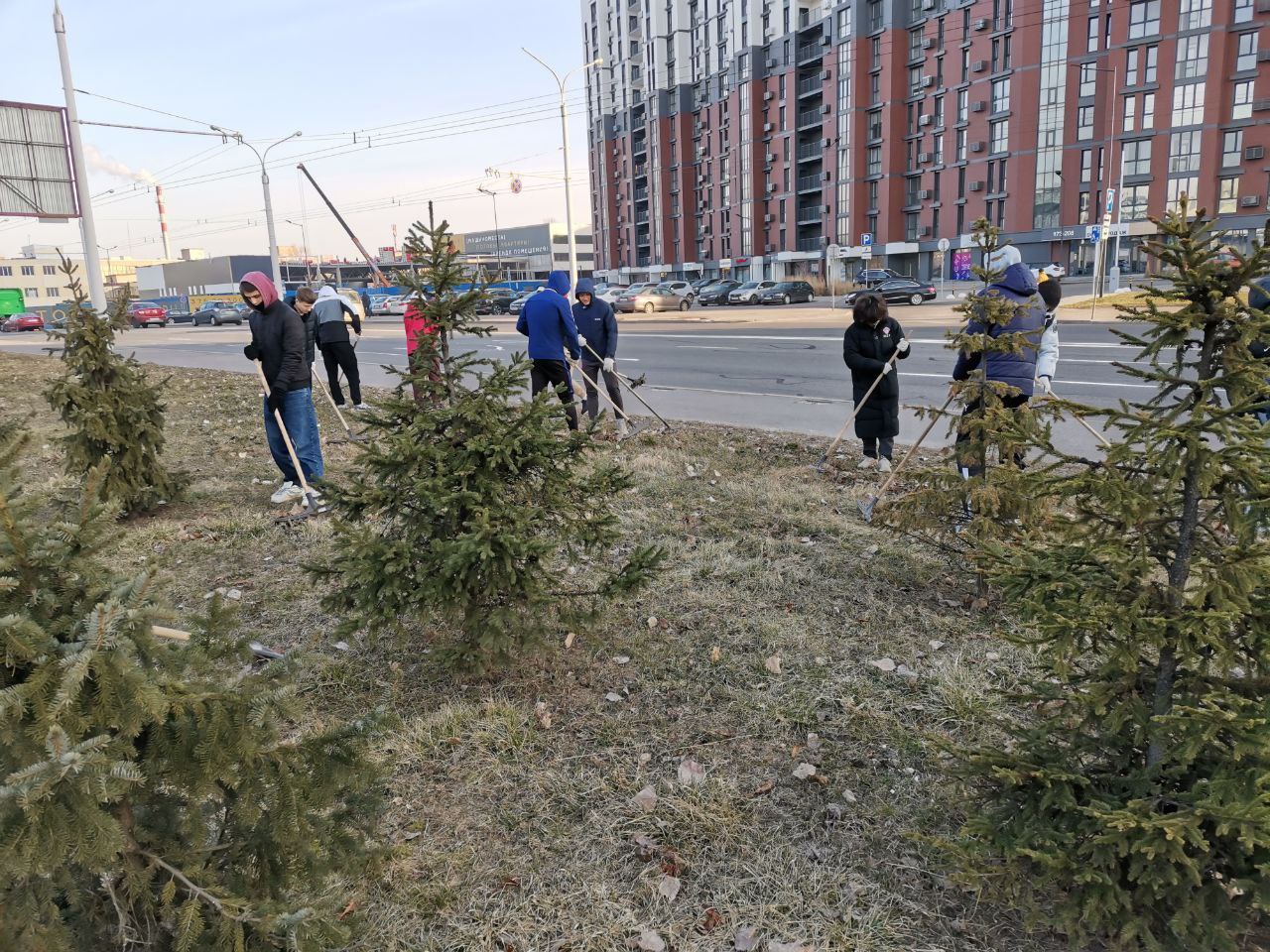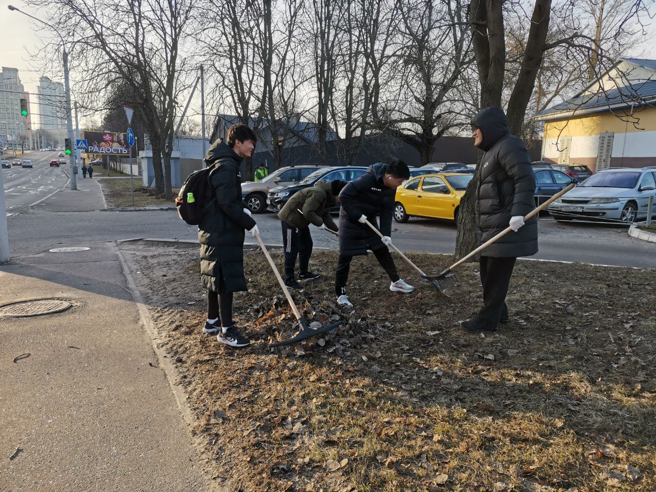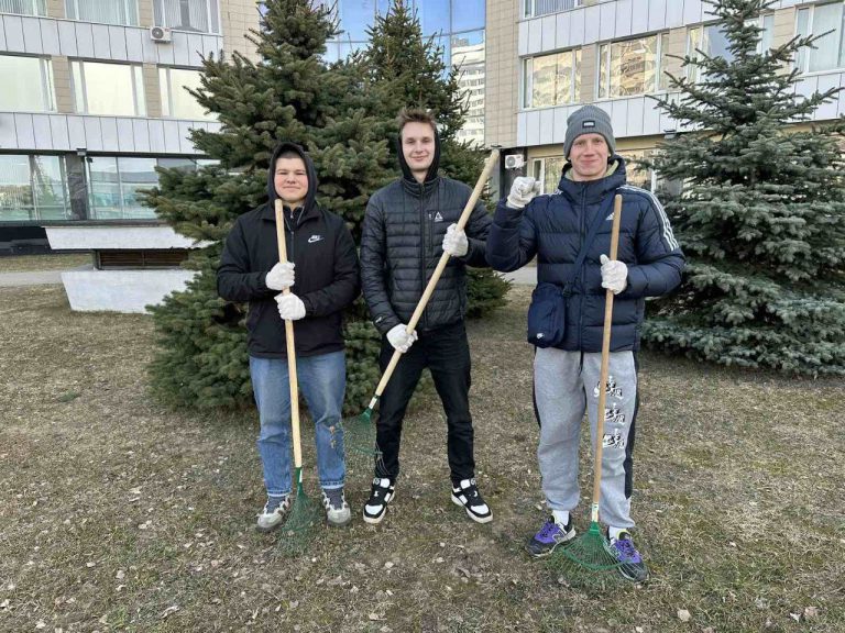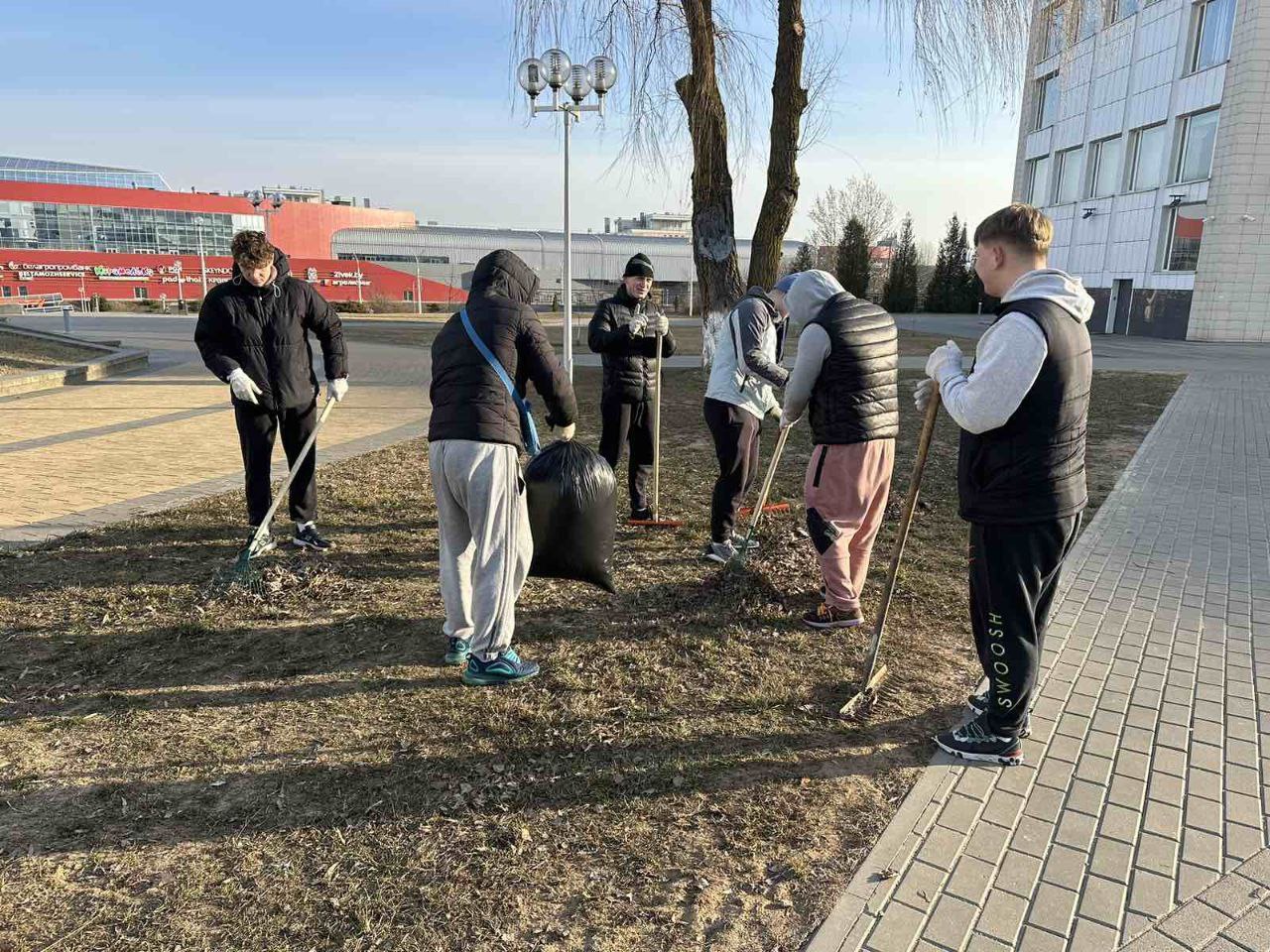 Под руководством кураторов учебных групп студенты 3 курса кафедры спортивной борьбы очищали от мусора территорию университета, а первокурсники кафедры футбола и хоккея — улицу Тимирязева.