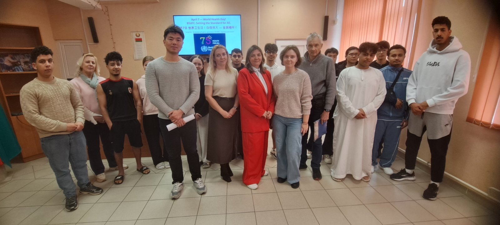 Мероприятие «7 апреля – Всемирный день здоровья. БГУФК — пример для всех» было организовано для иностранных и белорусских обучающихся с целью формирования культуры здорового образа жизни и разъяснения правовых норм Республики Беларусь.