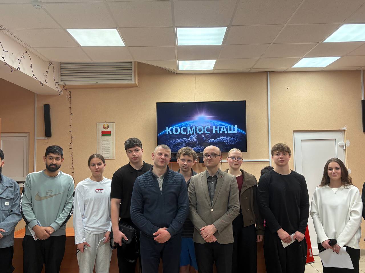 16 апреля 2026 года актовый зал общежития по проспекту Победителей, 107, превратился в импровизированный космодром. По инициативе педагога-организатора Игоря Владимировича Козела здесь состоялся интерактивный культурно-развлекательный вечер «Человечество на пути к звездам», приуроченный к Международному дню космонавтики.