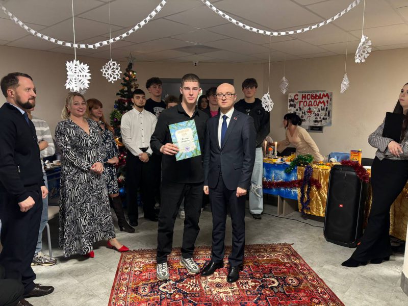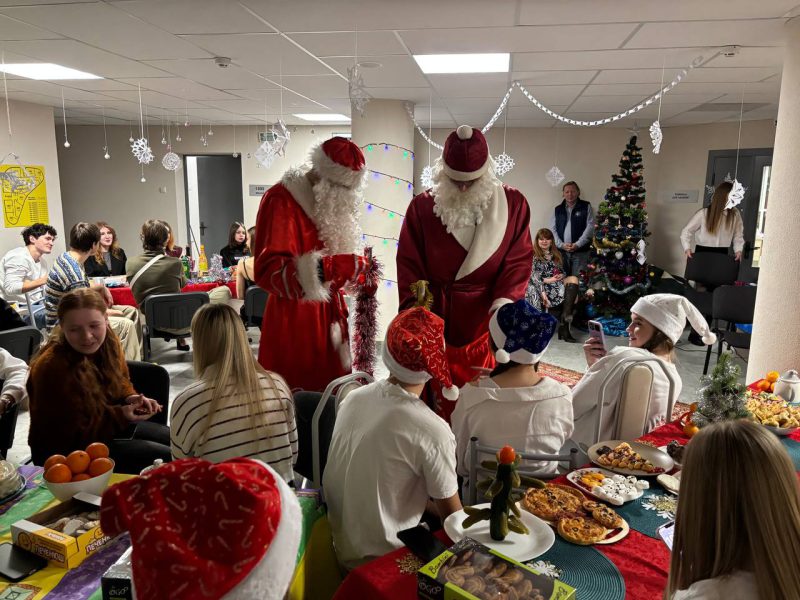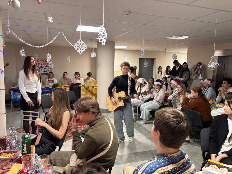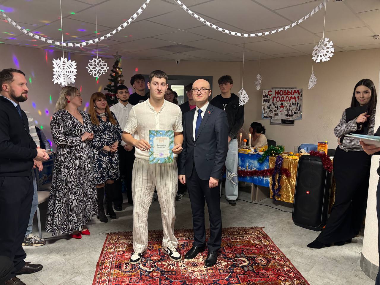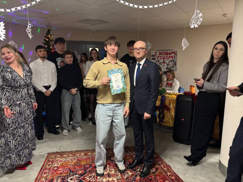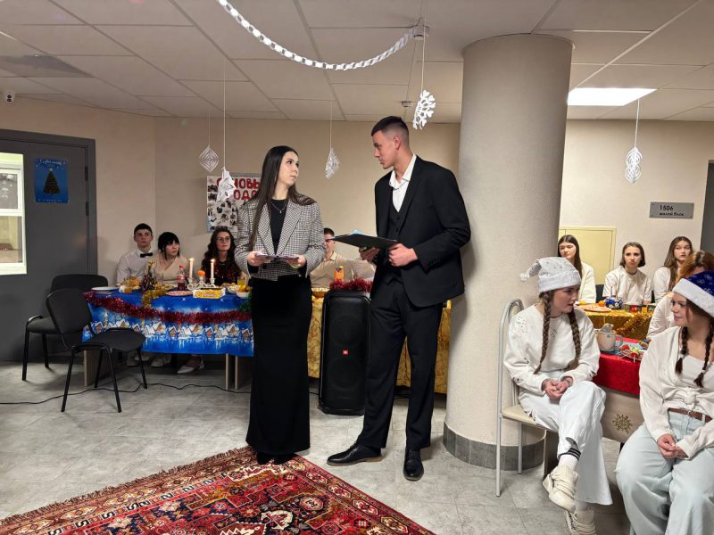 На кануне Нового года в общежитии по ул.Радужной, 25 собрались ребята из студенческого актива общежития, чтобы подвести итоги уходящего 2025 года и поздравить друг друга с наступающим Новым 2026 годом.