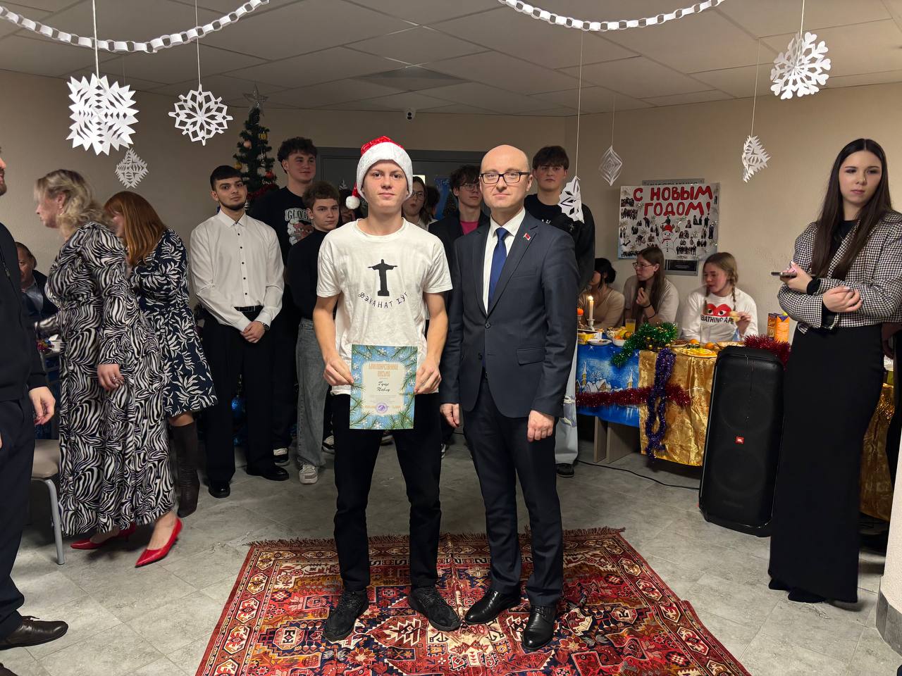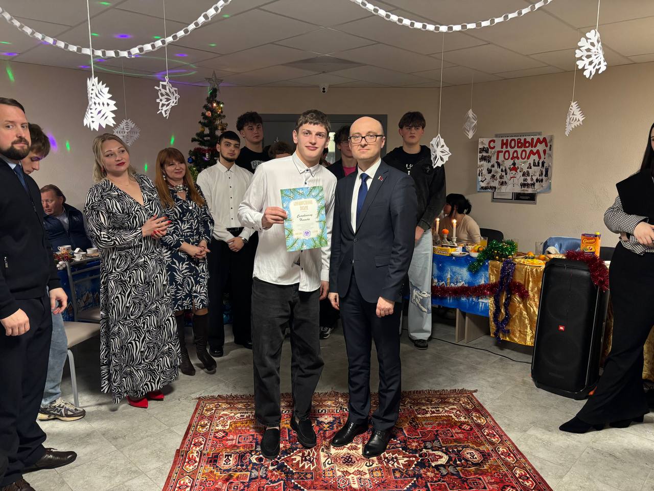 Поздравить ребят с праздником пришли проректор по идеологической и воспитательной работе Артем Васильевич Свиридов, председатель профкома студентов Павел Эдуардович Корсак, администрация общежития во главе с заведующим общежитием Аллой Ивановной Качура.