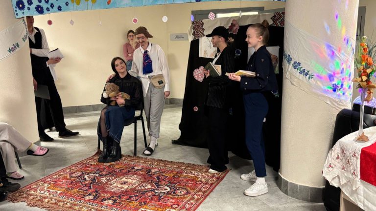 Студенты продемонстрировали оригинальное и обновленное понимание произведений Кондрата Крапивы: обучающиеся представили театрализованные постановки, прочитали басни и сатирические стихи автора, которые остаются актуальными и сегодня.