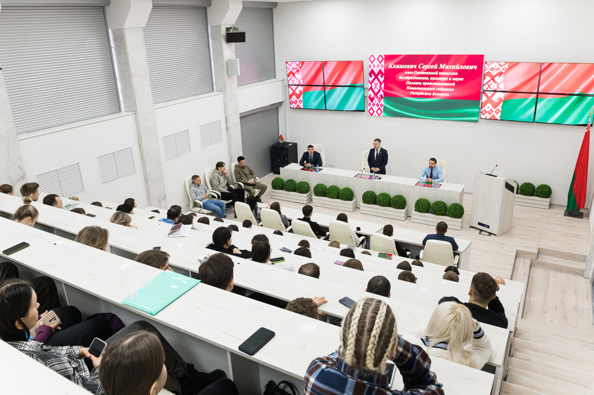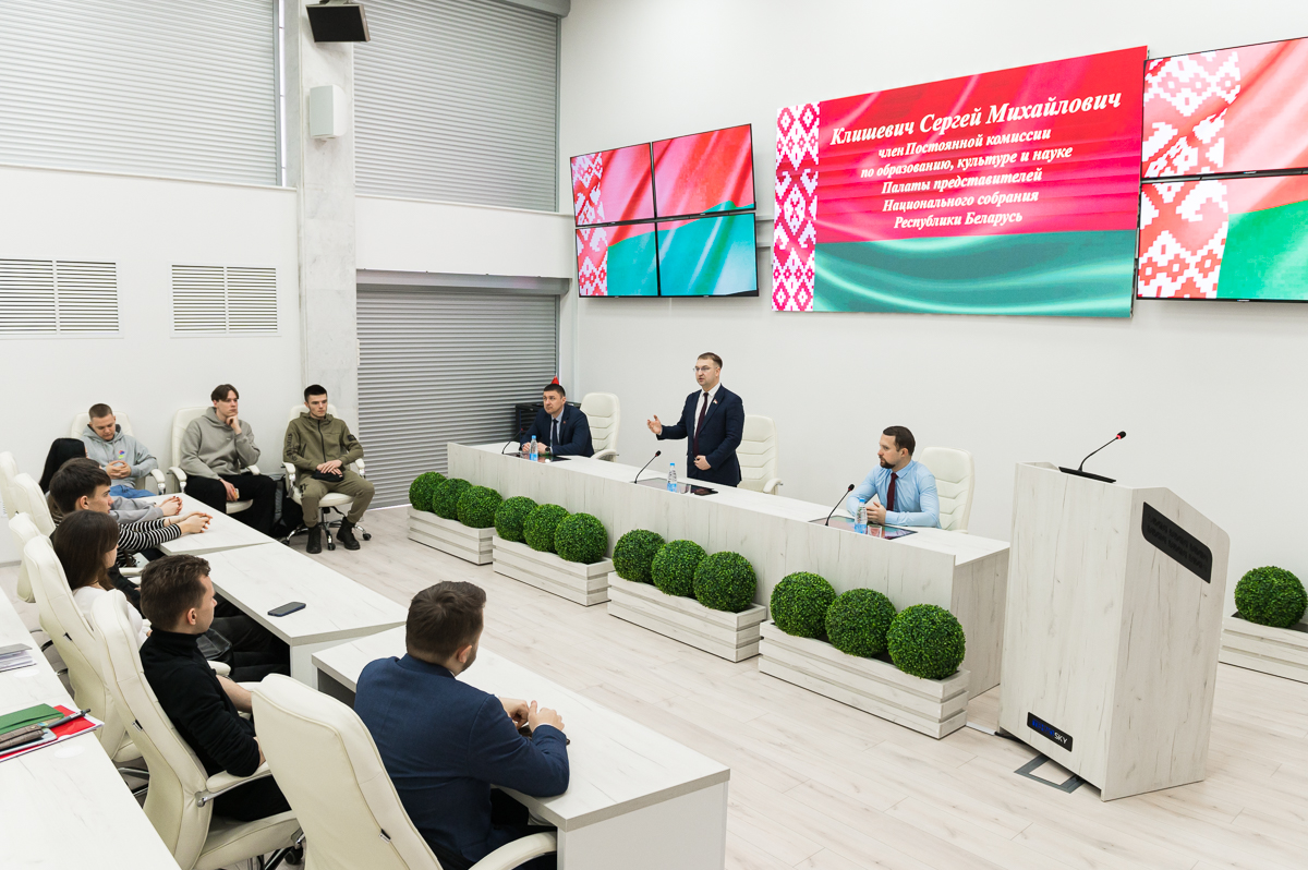 14 февраля состоялась встреча студентов университета с членом Постоянной комиссии по образованию, культуре и науке Палаты представителей Национального собрания Республики Беларусь Клишевичем Сергеем Михайловичем.
