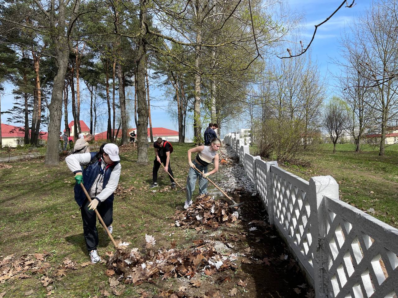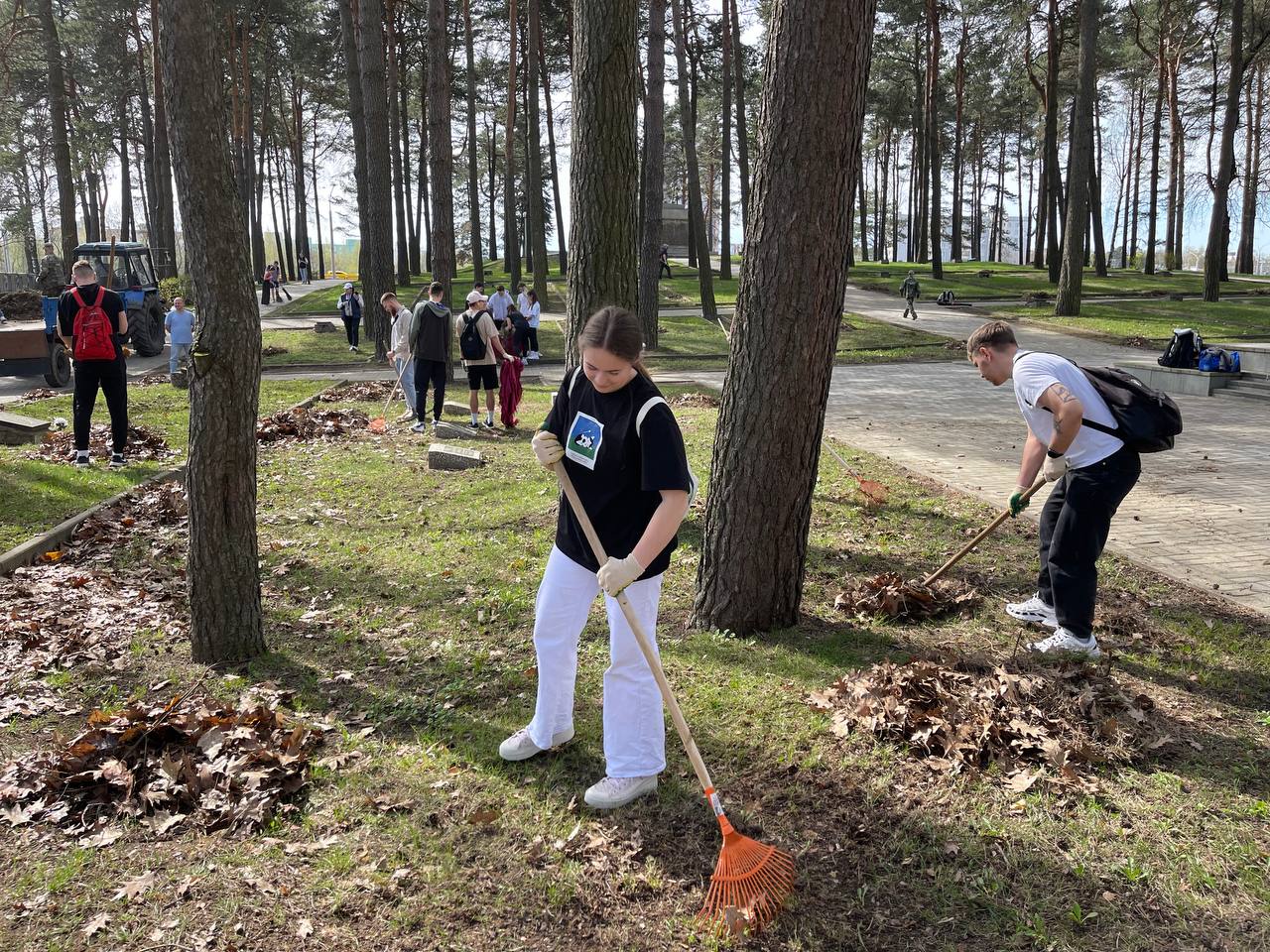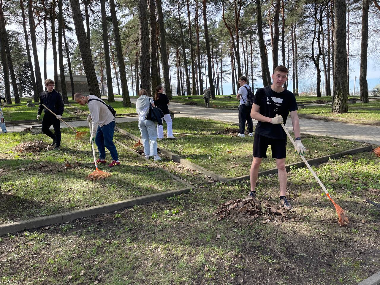 Студенты под руководством кураторов учебных групп убрали сухую листву и мусор на территории Мемориального комплекса «Масюковщина».