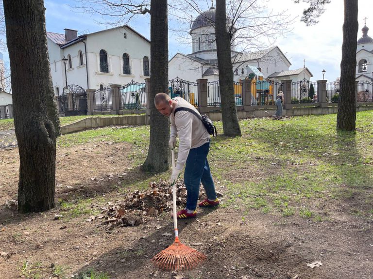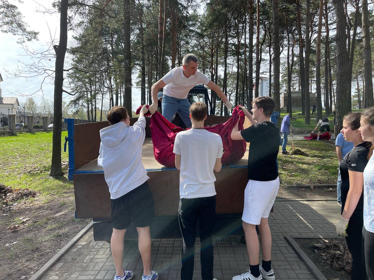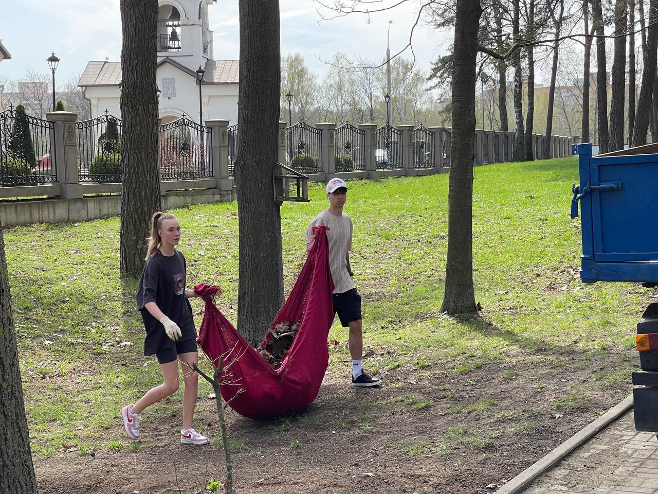 Студенты под руководством кураторов учебных групп убрали сухую листву и мусор на территории Мемориального комплекса «Масюковщина».