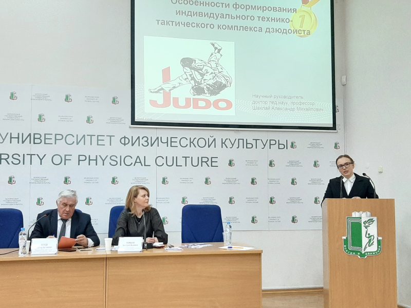 – Латушкиной Валерии Викторовны, аспирантки кафедры спортивной борьбы на тему «Особенности формирования индивидуального технико-тактического комплекса дзюдоиста», научный руководитель – Шахлай Александр Михайлович, доктор педагогических наук, профессор, профессор кафедры спортивной борьбы Белорусского государственного университета физической культуры.