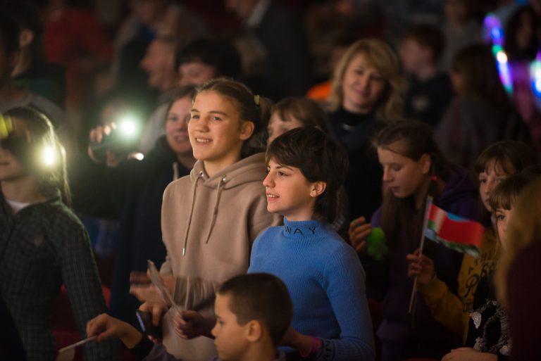 Около трехсот юных гостей из психоневрологических интернатов Минской области посетили благотворительный концерт, на котором представляли свои номера студенты университета и приглашенные гости. Тепло встречали зрители выступления танцевальных коллективов, спортсменов, церковного хора, фокусника, артистов белорусской эстрады и многих других исполнителей.