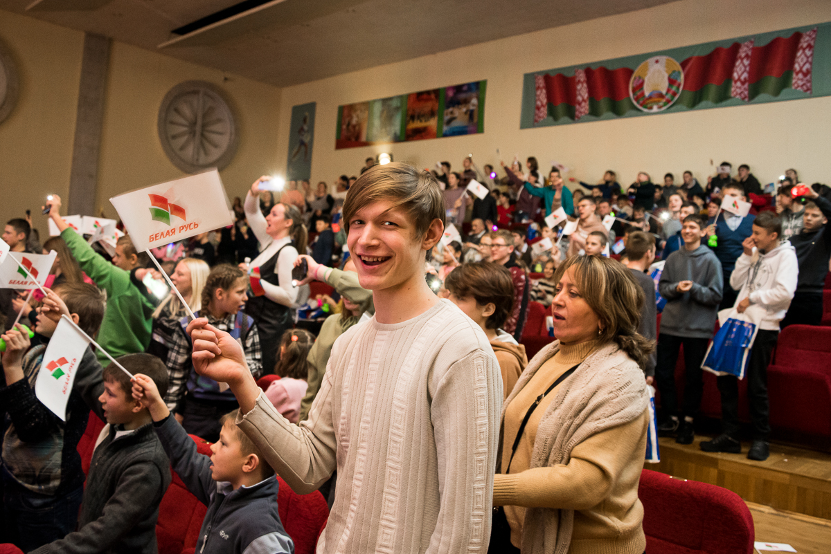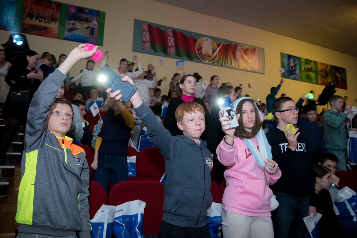 Около трехсот юных гостей из психоневрологических интернатов Минской области посетили благотворительный концерт, на котором представляли свои номера студенты университета и приглашенные гости. Тепло встречали зрители выступления танцевальных коллективов, спортсменов, церковного хора, фокусника, артистов белорусской эстрады и многих других исполнителей.