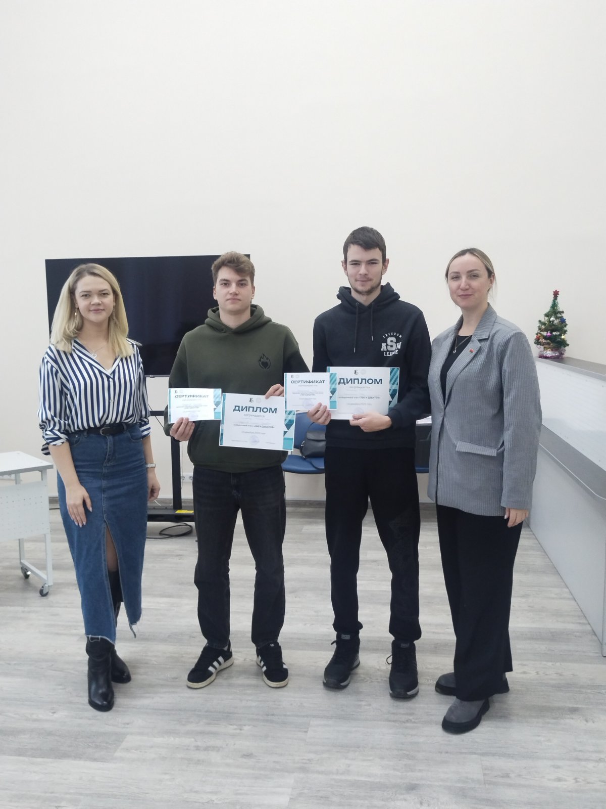Все члены команд получили сертификат участника дебатов.