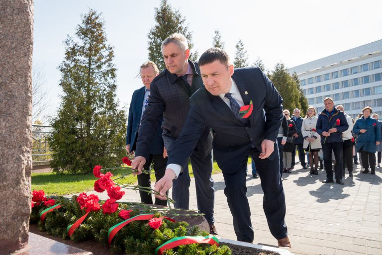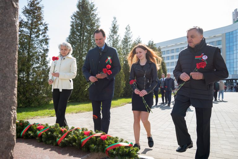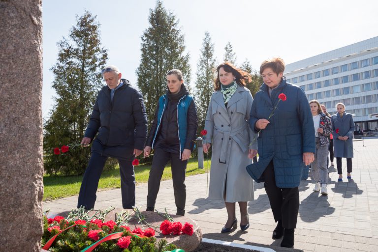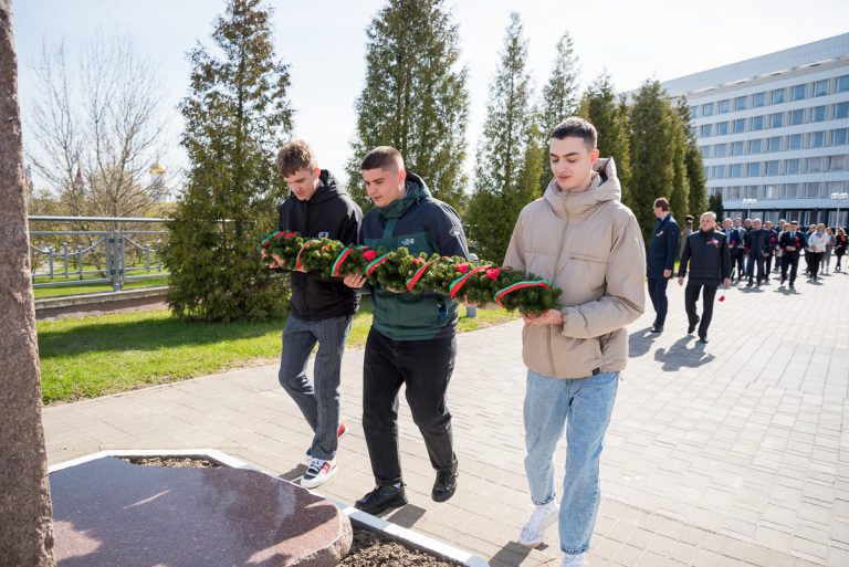 Как дань уважения и почтения всем погибшим в Великую Отечественную войну участники мероприятия возложили Гирлянду памяти и цветы к памятнику преподавателям и студентам, павшим в борьбе за свободу и независимость Родины.