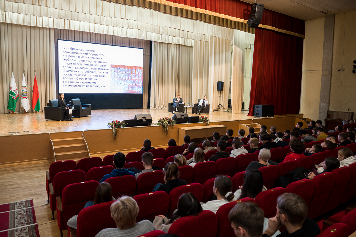 О проблемах незаконного оборота наркотических средств и психотропных веществ в Республике Беларусь вели беседу приглашенные спикеры мероприятия: психолог Центра дружественного подросткам «Синяя птица» Маклюк Ирина Владимировна; психолог кабинета опиоидной заместительной терапии Минского городского клинического наркологического центра Дударенок Виктория Николаевна; ведущий специалист мониторингового информационного методического отделения детского здоровья Республиканского научно-практическоо центра «Мать и дитя» Толстуха Екатерина Чеславовна.