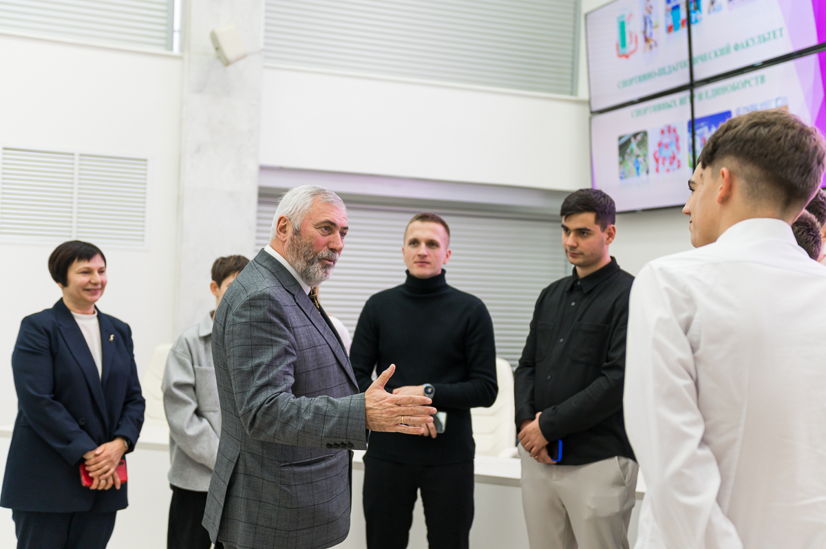 По окончании мероприятия Тенгиз Шукриевич побеседовал с преподавателями и студентами кафедры футбола и хоккея, пожелал им успехов в развитии белорусского футбола.
