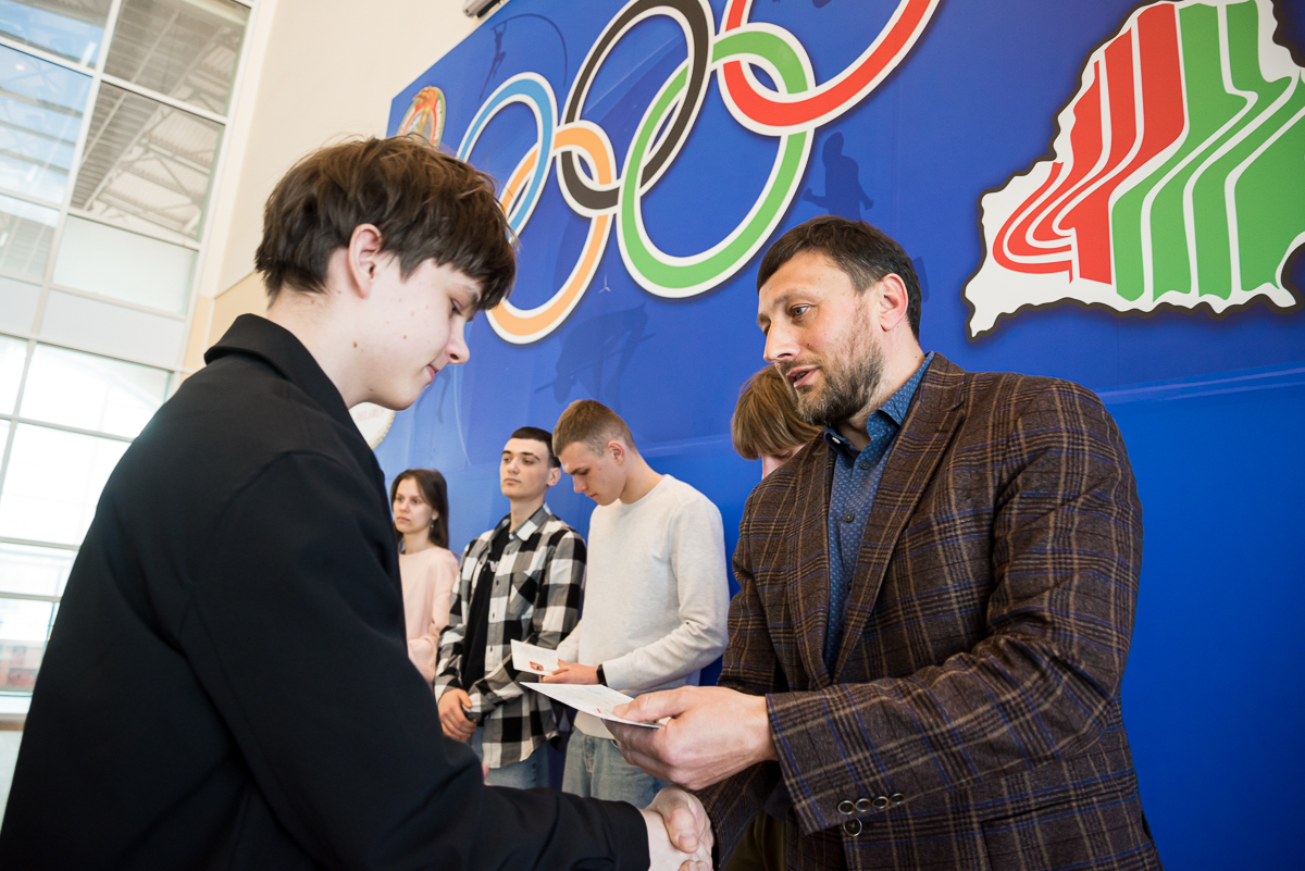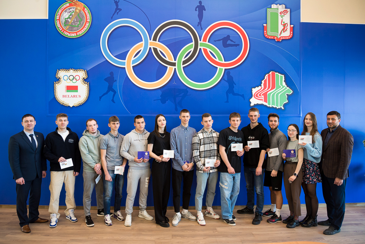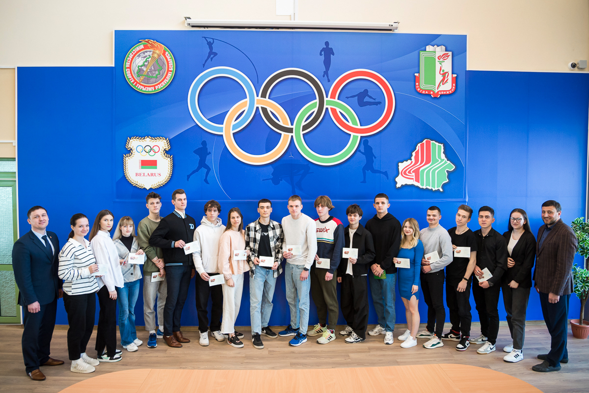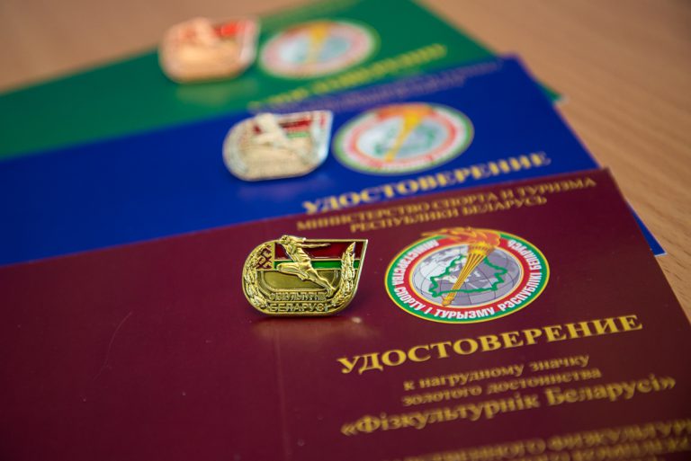 После завершения диалога студентам университета, выполнившим нормативы ГФОК Республики Беларусь, были вручены значки «Фізкультурнік Беларусі» золотого, серебряного и бронзового достоинства.