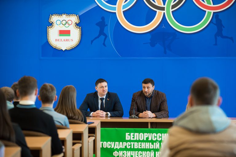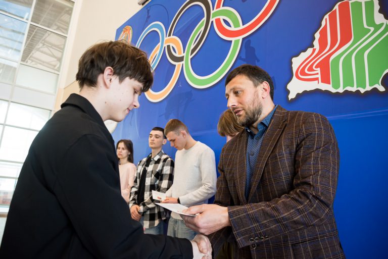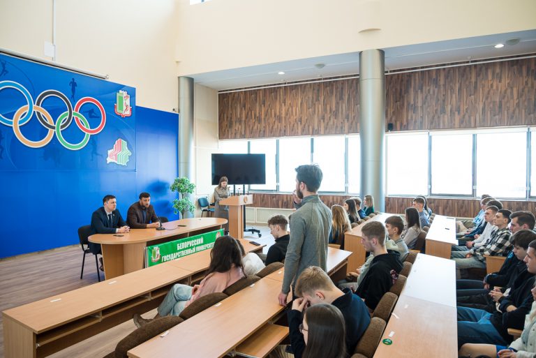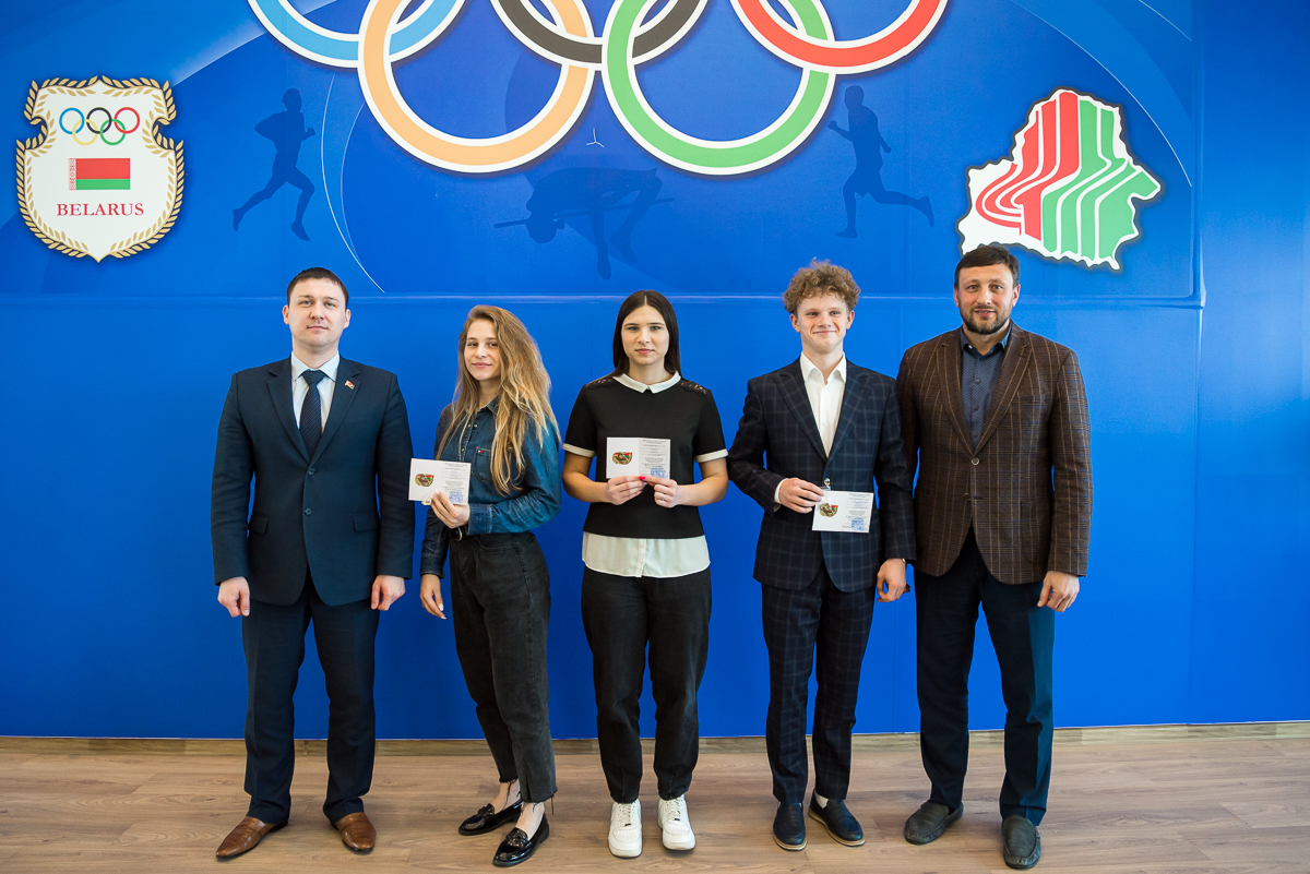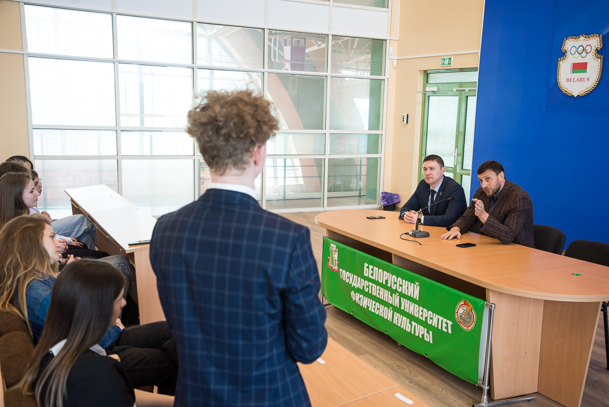 После завершения диалога студентам университета, выполнившим нормативы ГФОК Республики Беларусь, были вручены значки «Фізкультурнік Беларусі» золотого, серебряного и бронзового достоинства.