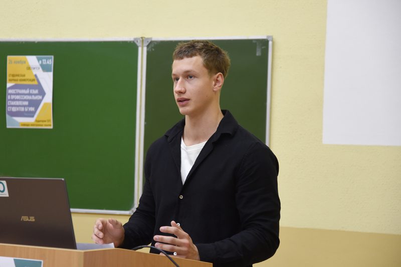 Ребекевша Никита (2206 группа) с докладом «Анализ и пути исправления технических ошибок в беге на 100м. (на немецком языке)», научный руководитель: Соловей Т.А., ст.преподаватель кафедры иностранных языков.