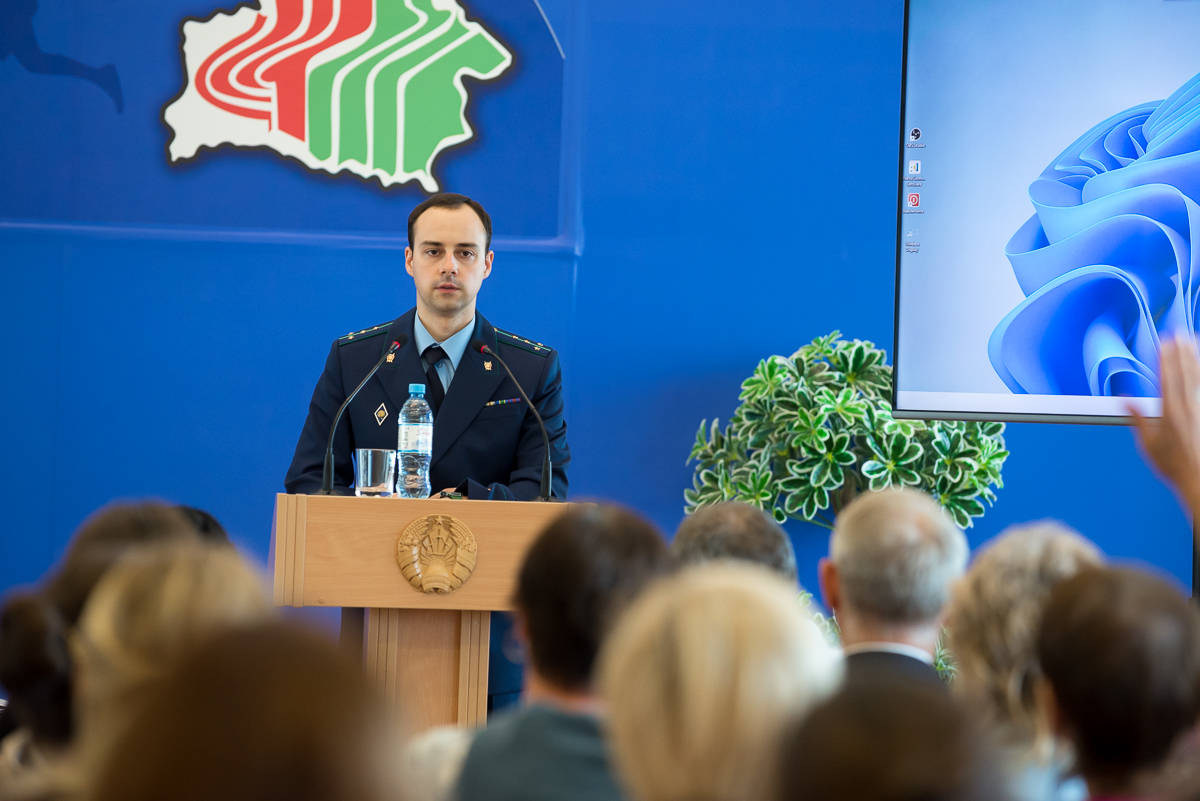 На мероприятии присутствовали заместитель начальника управления Следственного комитета Республики Беларусь по г. Минску, полковник юстиции Шаман Денис Леонидович, заместитель начальника следственного отделения Фрунзенского (г. Минска) районного отдела Следственного комитета Республики Беларусь, подполковник юстиции Андросюк Юрий Николаевич, старший помощник прокурора Центрального района г. Минска Лексютин Алексей Александрович, ректор университета Репкин Сергей Борисович, проректоры, директора институтов, деканы факультетов, руководители структурных подразделений, заведующие кафедрами, материально-ответственные лица.