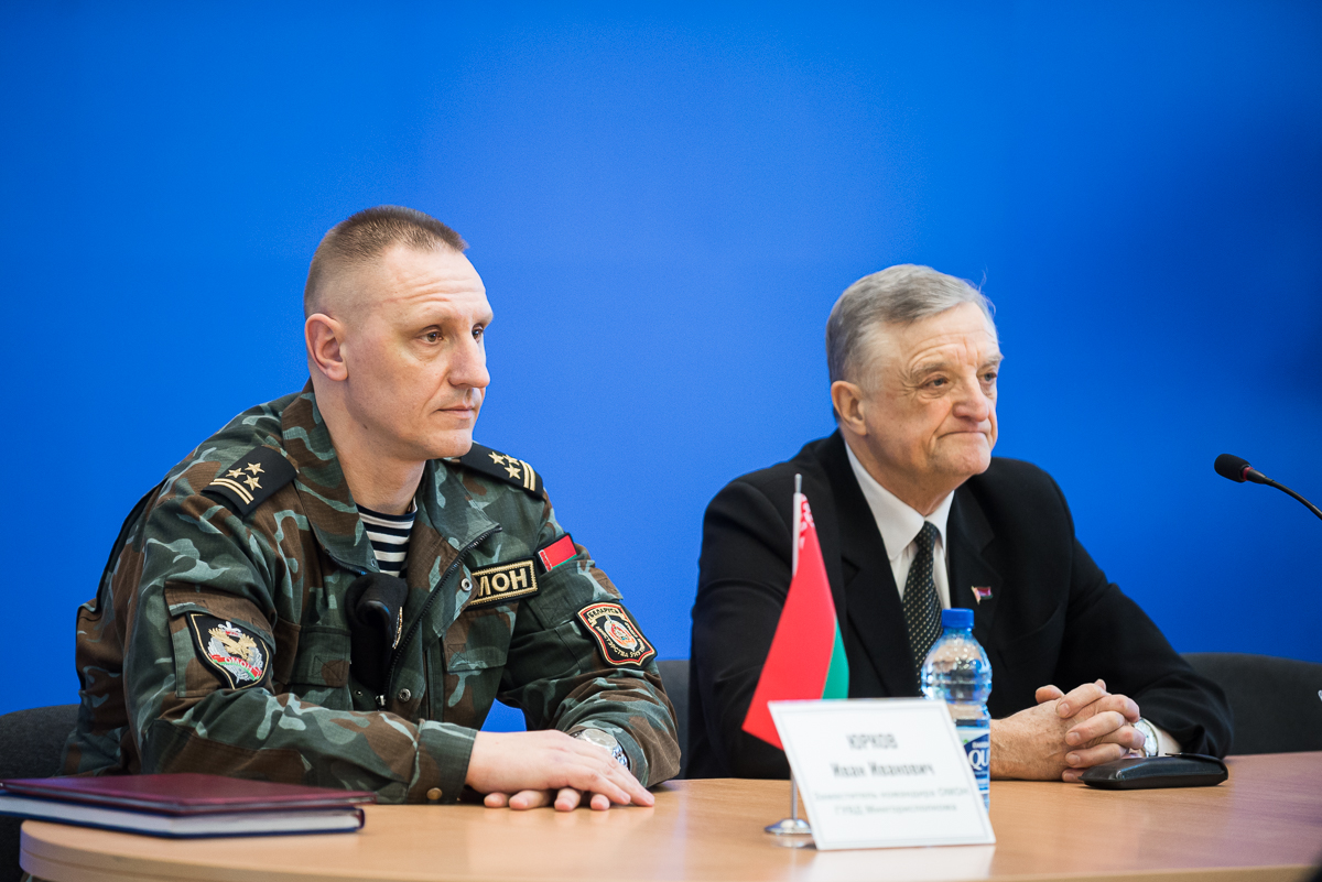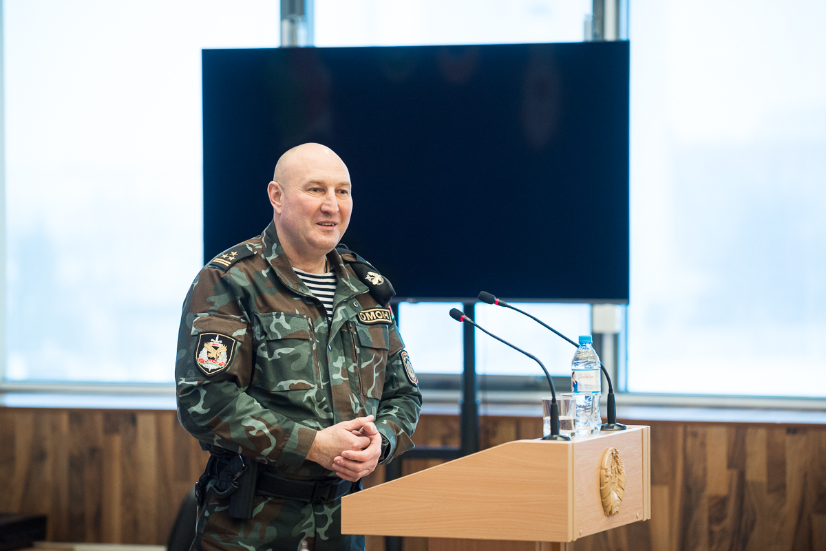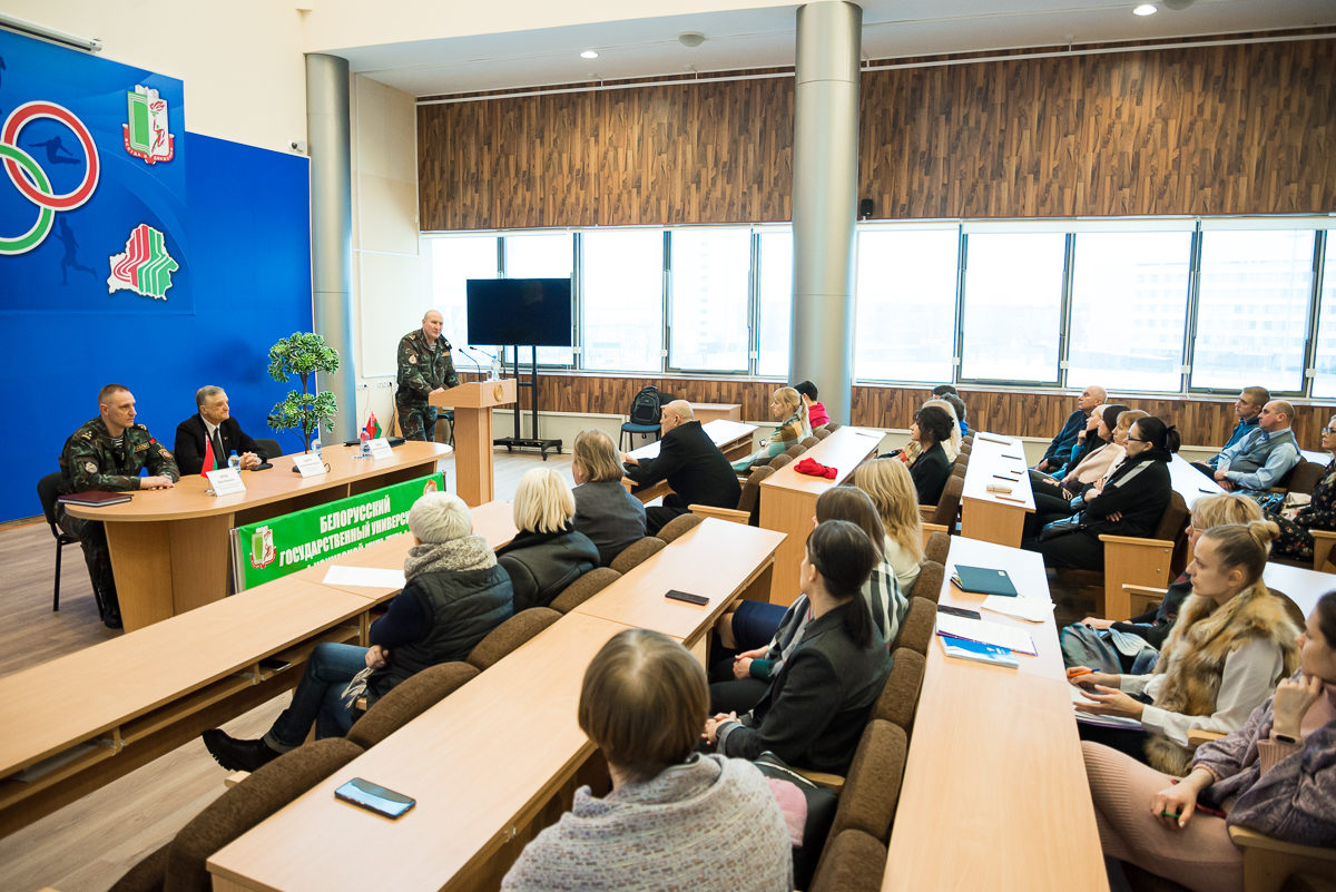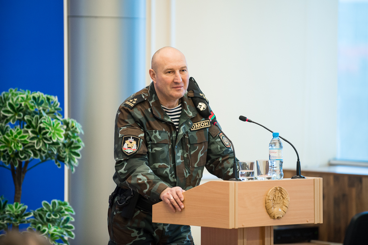 26 января состоялась встреча работников университета с командиром ОМОН ГУВД Мингорисполкома Балабой Дмитрием Владимировичем и заместителем командира ОМОН ГУВД Мингорисполкома Юрковым Иваном Ивановичем. Модератором мероприятия выступил первый проректор университета Шаврук Сергей Валентинович.