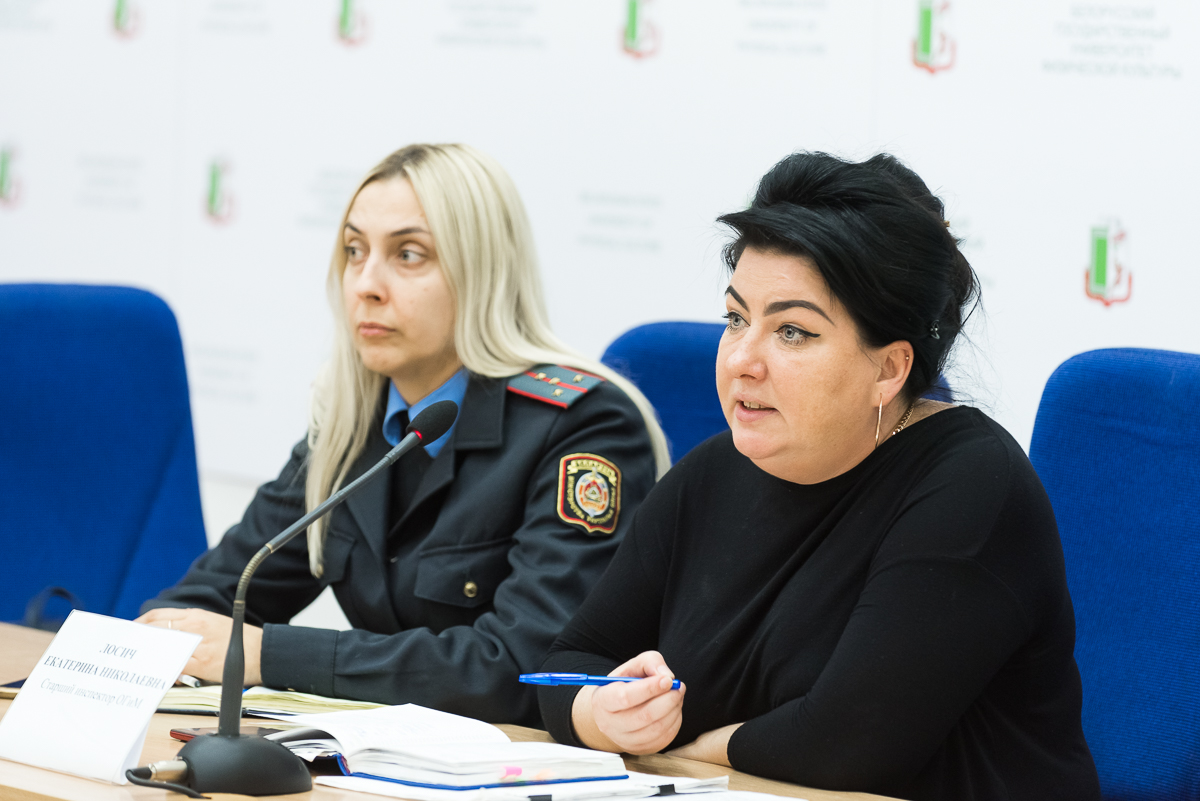 15 ноября состоялась встреча работников отдела по гражданству и миграции Центрального РУВД г. Минска, старшего инспектора, Лосич Екатерины Николаевны и инспектора Пархимович Марии Михайловны совместно с первым проректором университета С.В.Шавруком и сотрудников отдела международных связей с иностранными студентами БГУФК с целью осуществления профилактических мероприятий по контролю за пребыванием иностранных граждан и лиц без гражданства, разъяснения требований законодательства Республики Беларусь и недопущения совершения противоправных деяний со стороны и в отношении иностранных граждан, прибывших в Республику Беларусь для обучения, а также предупреждению и пресечению нарушений общественного порядка на территории Республики Беларусь.