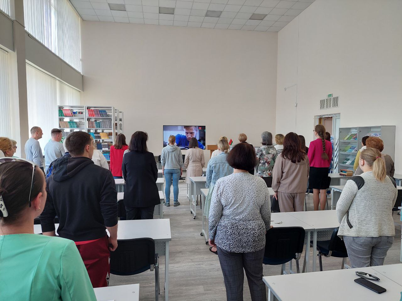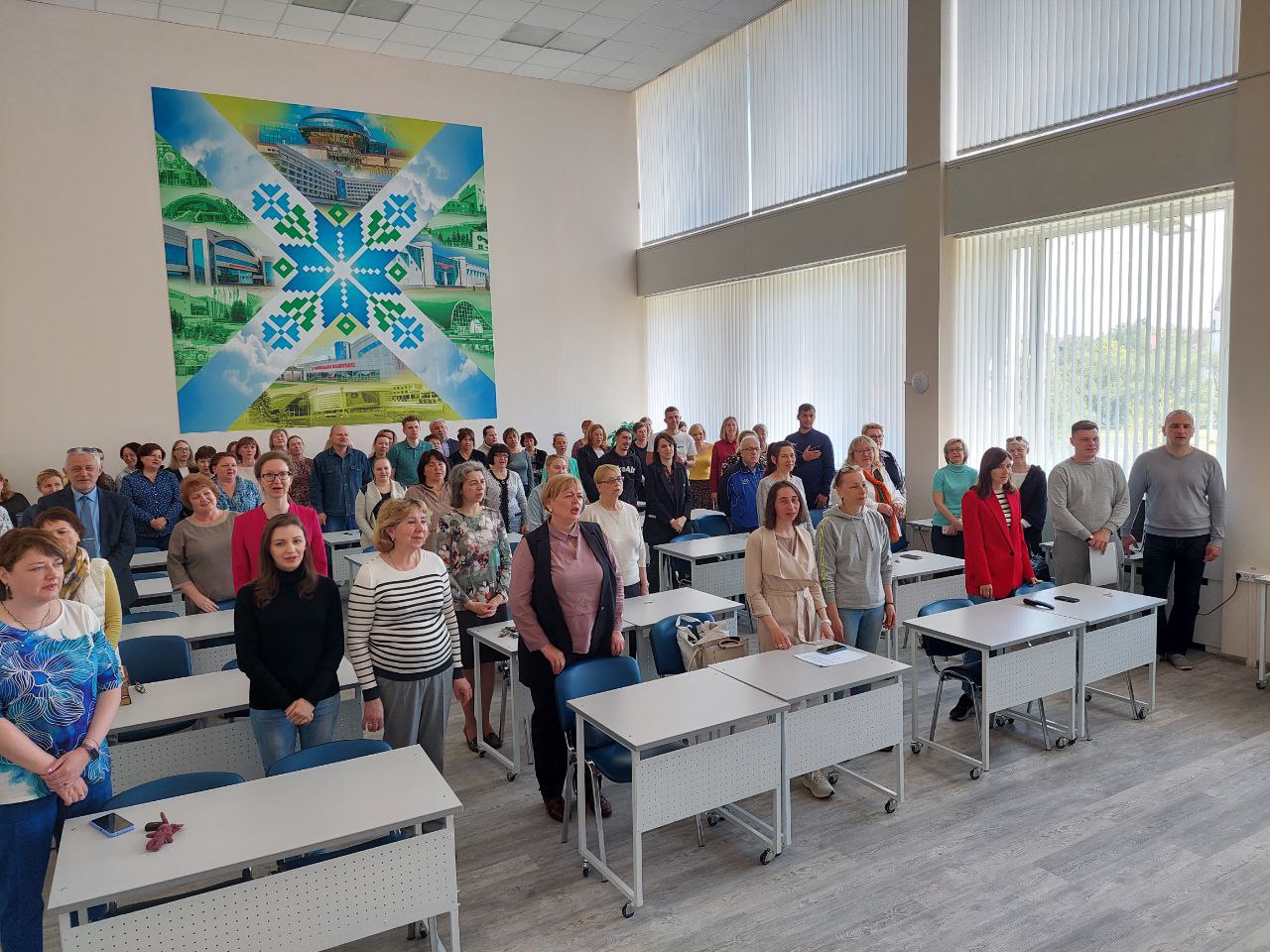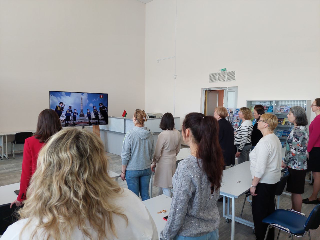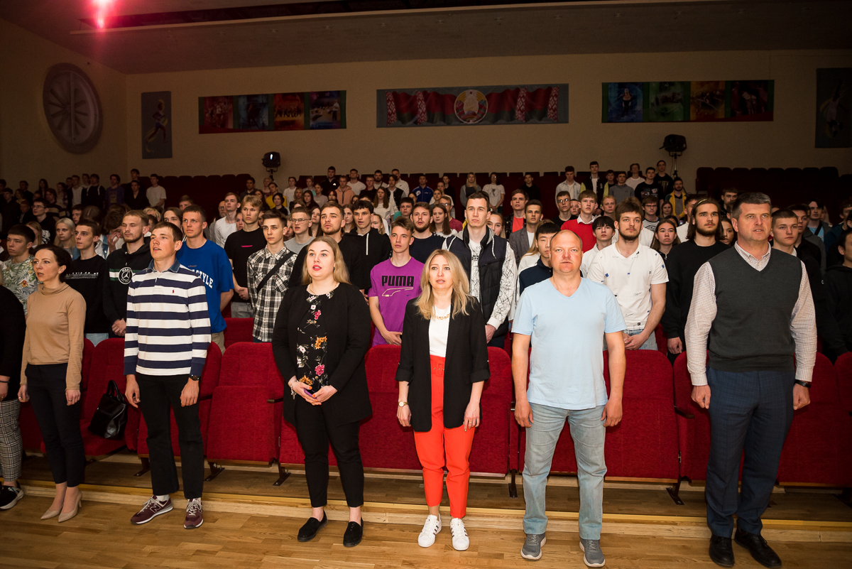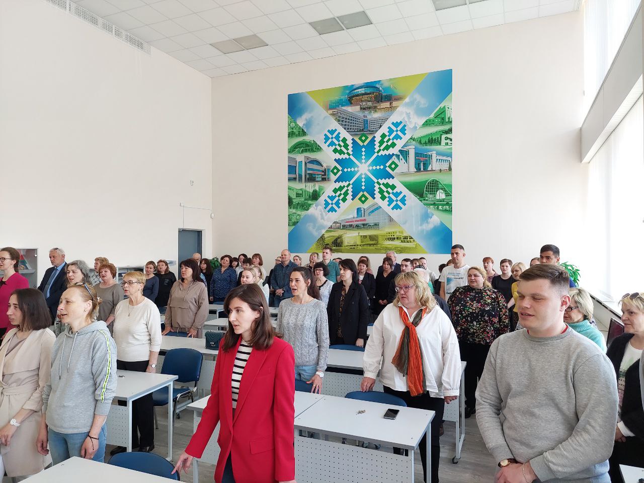 13 мая в рамках районной акции “Сэрцам адданыя роднай зямлі”, приуроченной ко Дню Государственного флага, Государственного герба и Государственного гимна Республики Беларусь, все сотрудники и студенты университета исполнили Государственный гимн.
