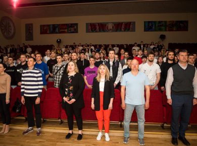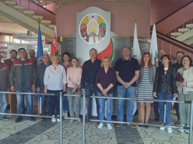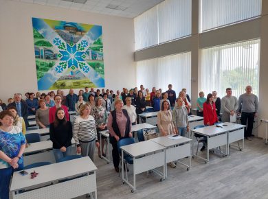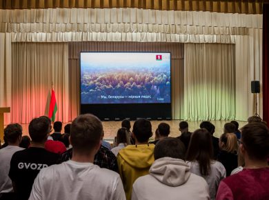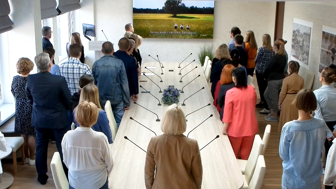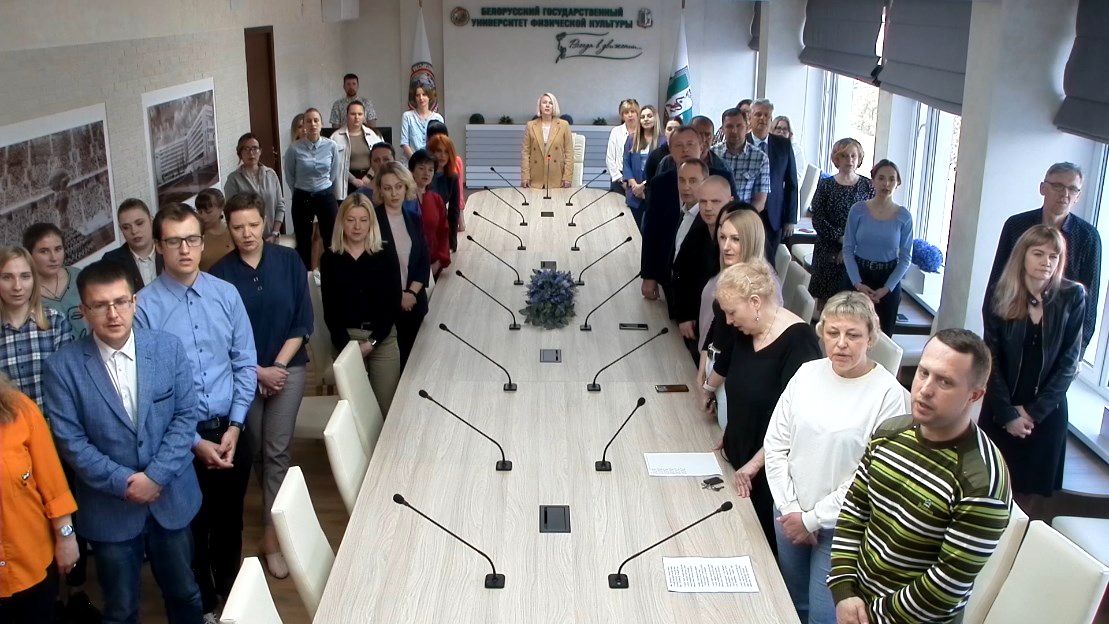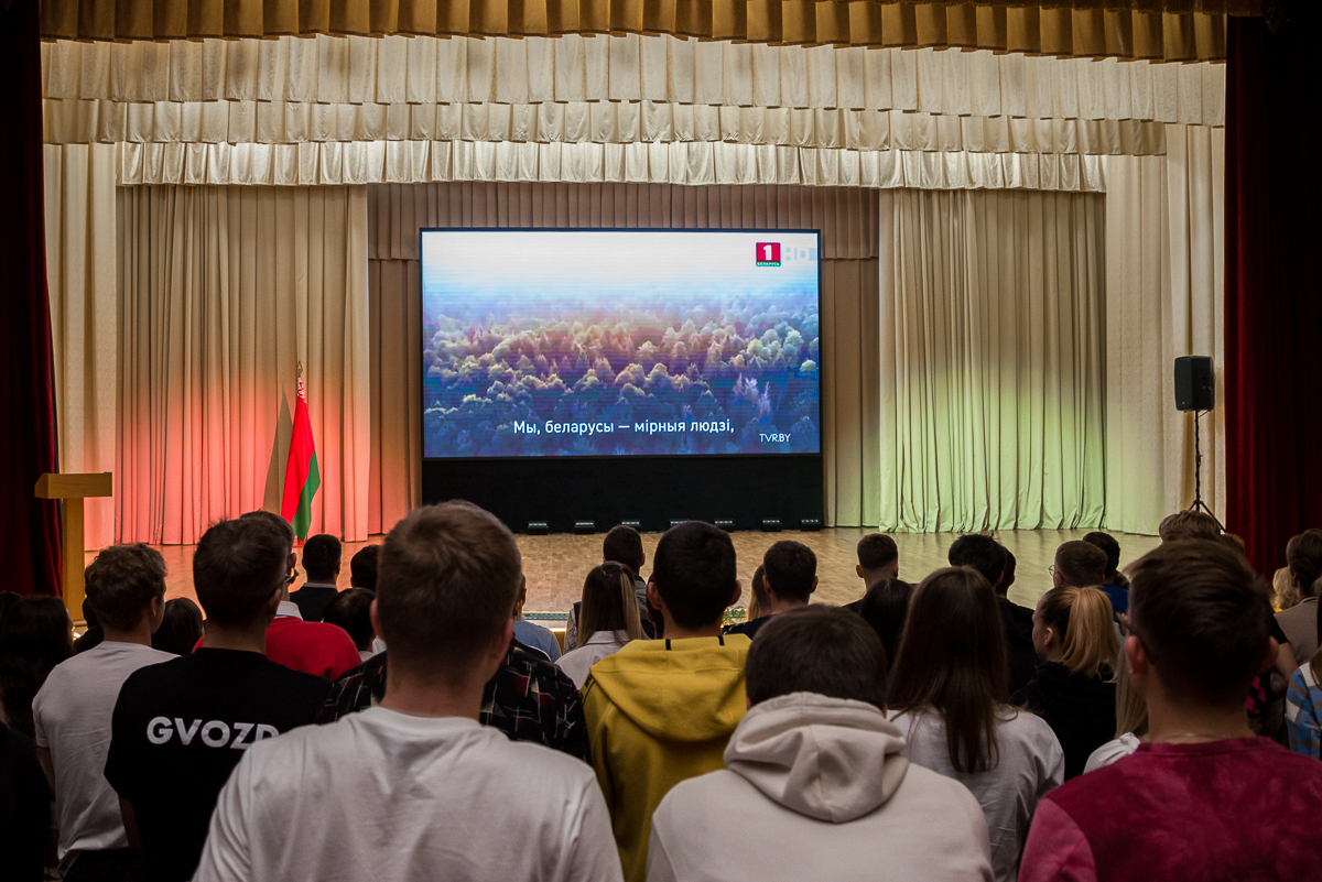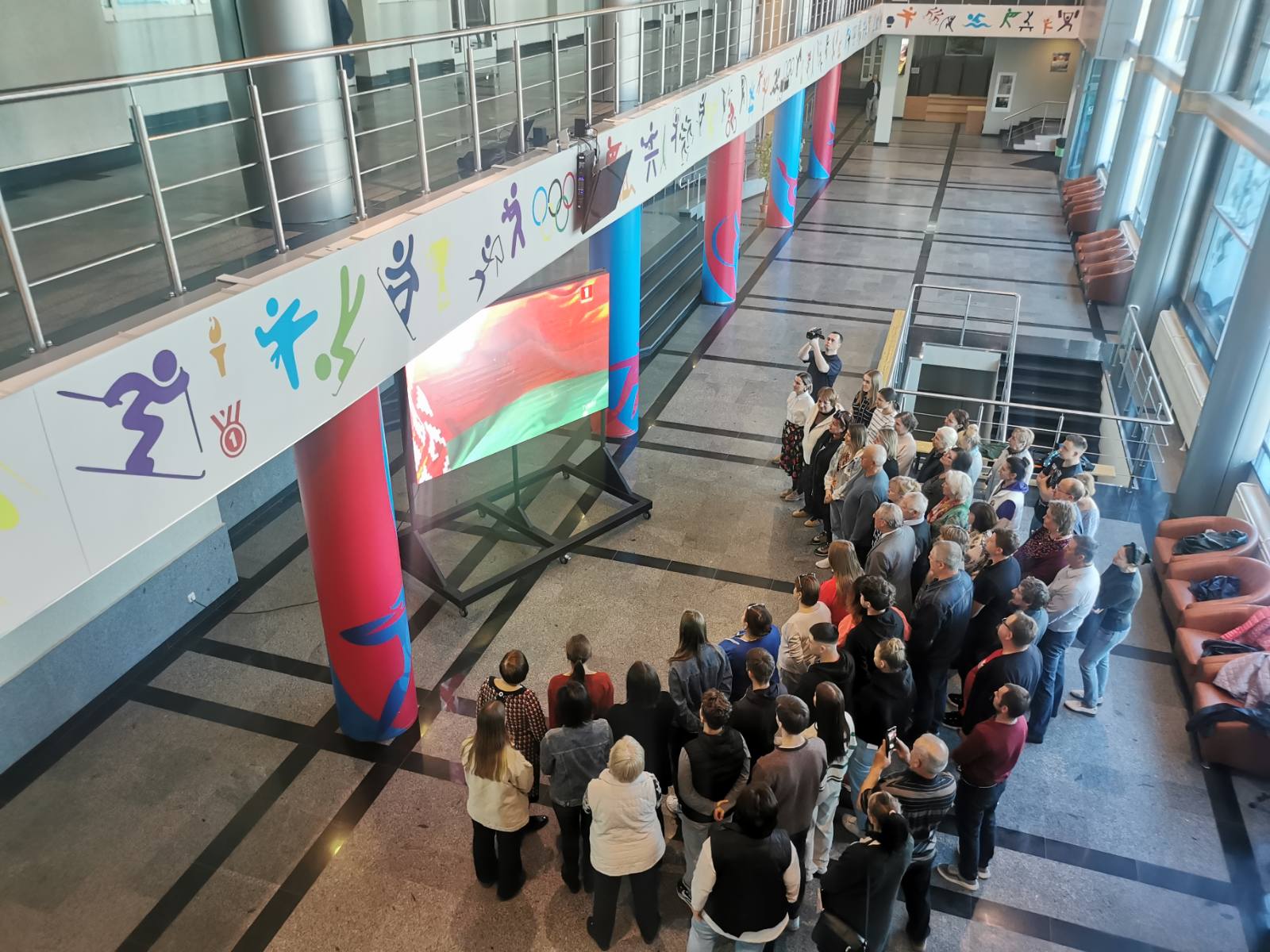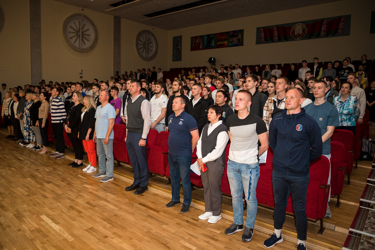 13 мая в рамках районной акции “Сэрцам адданыя роднай зямлі”, приуроченной ко Дню Государственного флага, Государственного герба и Государственного гимна Республики Беларусь, все сотрудники и студенты университета исполнили Государственный гимн.