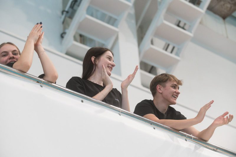 Болельщики активно поддерживали всех участников первенства, создавая шумную и радостную атмосферу. Студенты соревновались в личном зачете и эстафете.