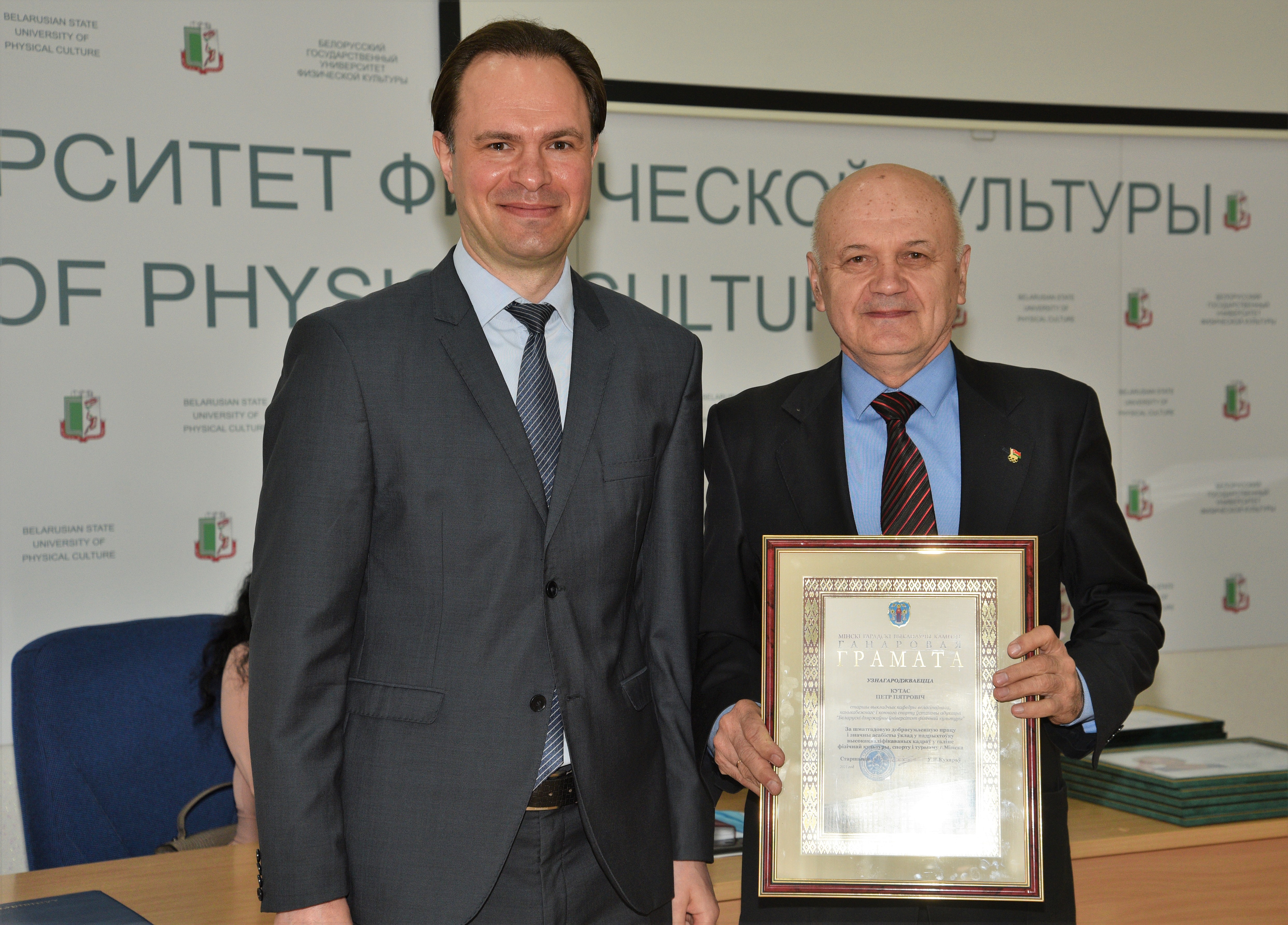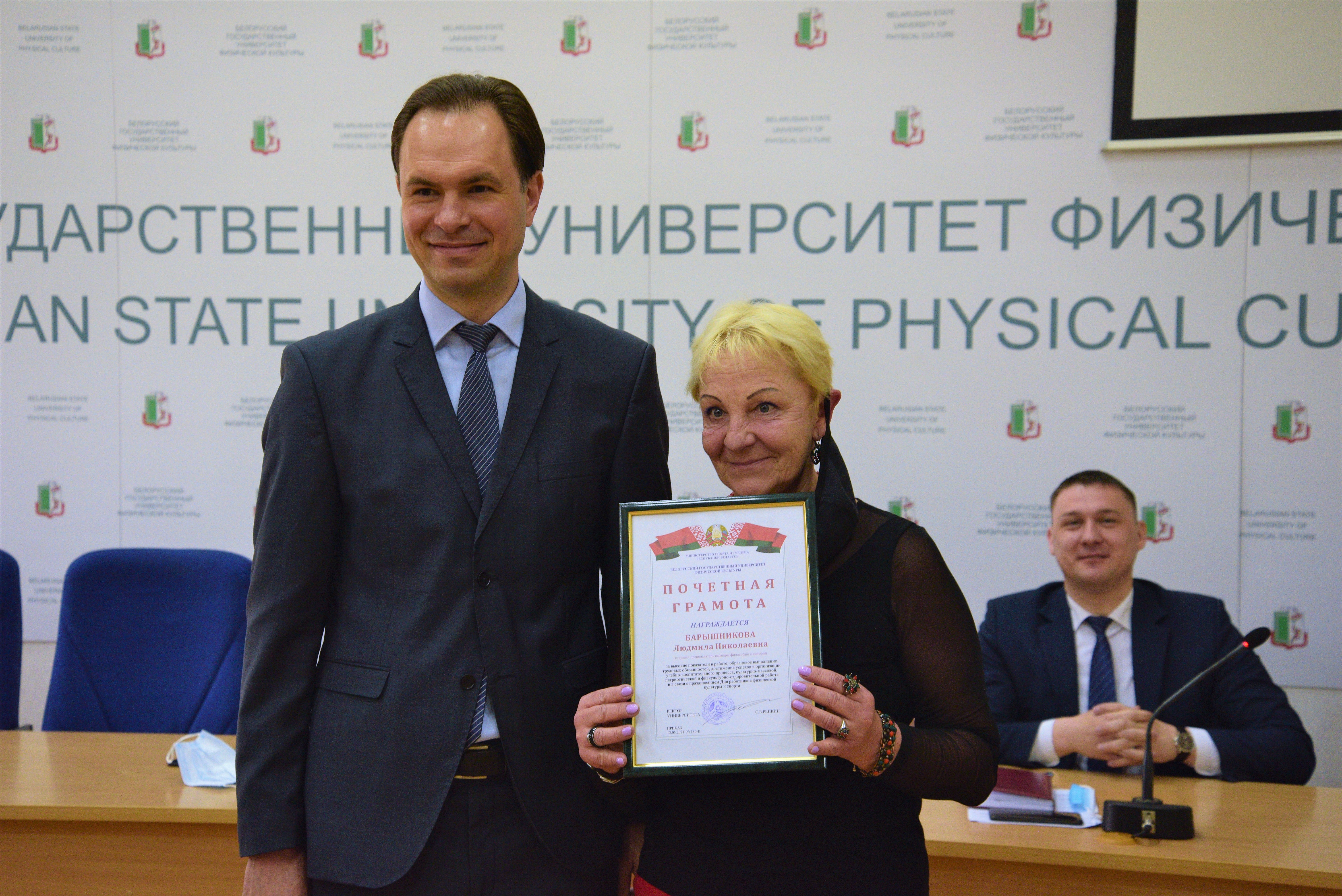 За успехи в педагогической и воспитательной работе, личный вклад в организацию, развитие и совершенствование образовательного процесса, его научно-методическое обеспечение, многолетнюю подготовку высококвалифицированных специалистов в отрасли физической культуры, спорта и туризма наградили