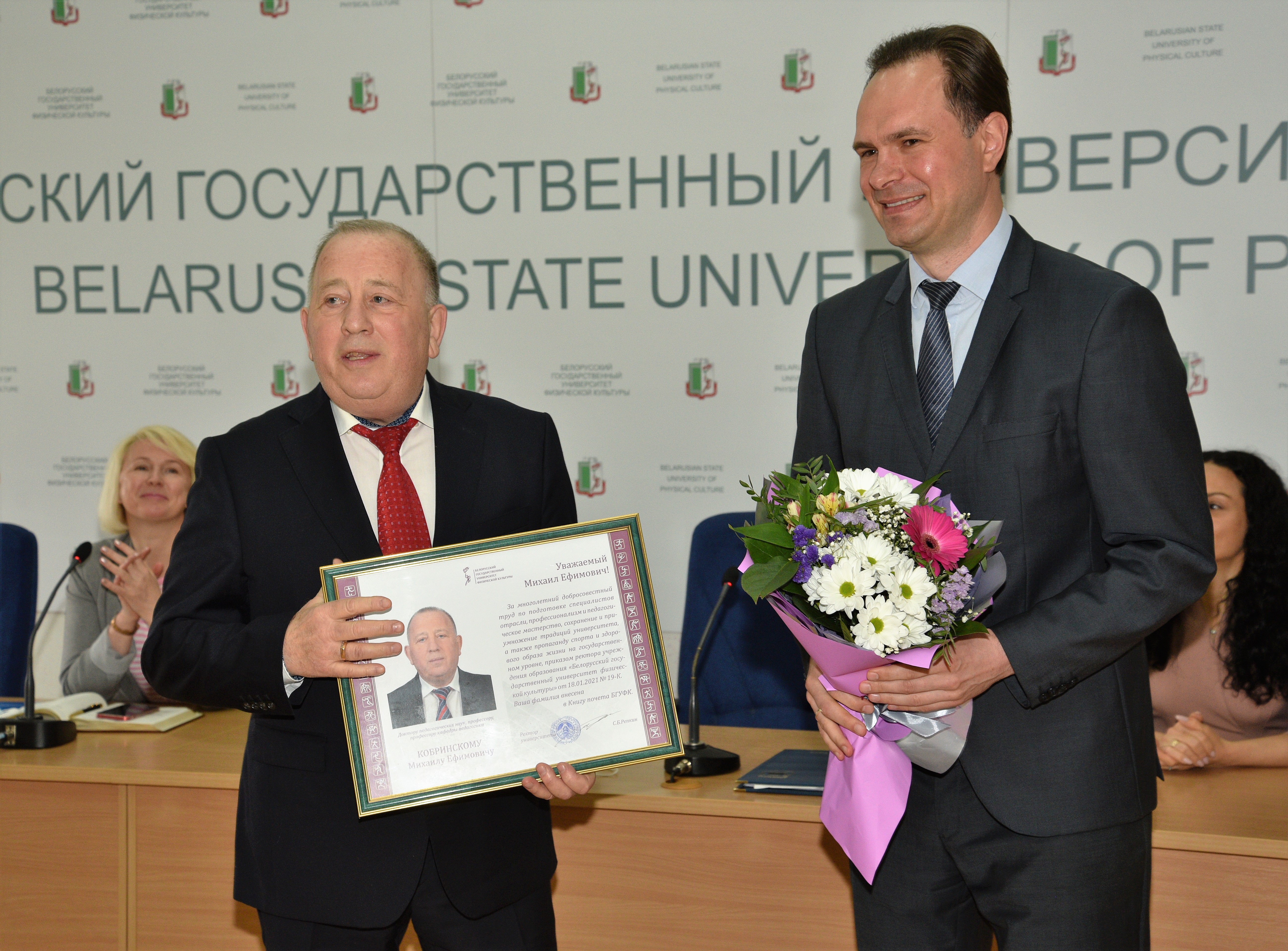 За успехи в педагогической и воспитательной работе, личный вклад в проведение образовательного процесса, его научно-методическое обеспечение, многолетнюю подготовку высококвалифицированных кадров в отрасли физической культуры, спорта и туризма наградили