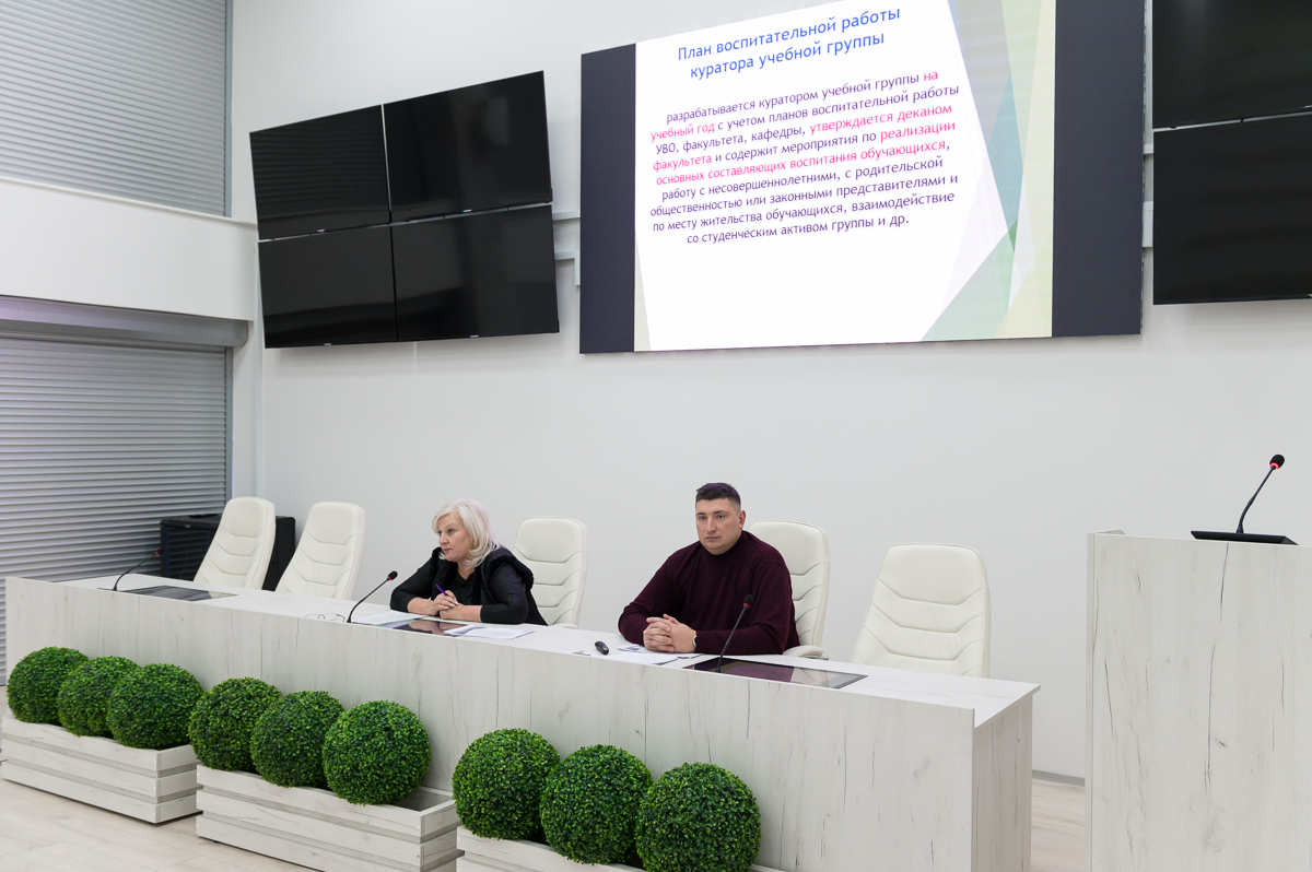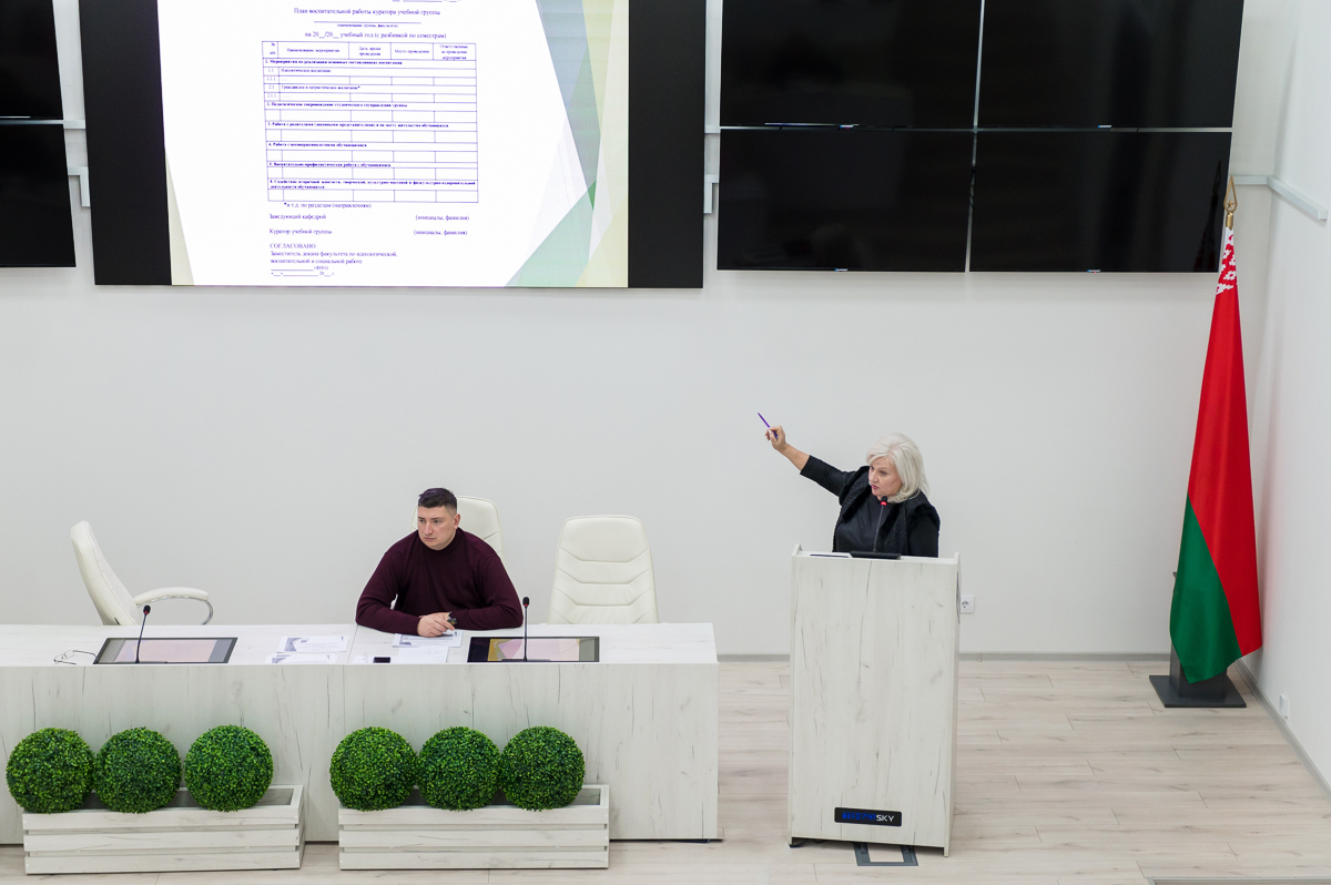 В заседании совета приняли участие кураторы учебных групп, заместители деканов по идеологической и воспитательной работе и работники отдела по идеологической и воспитательной работе.