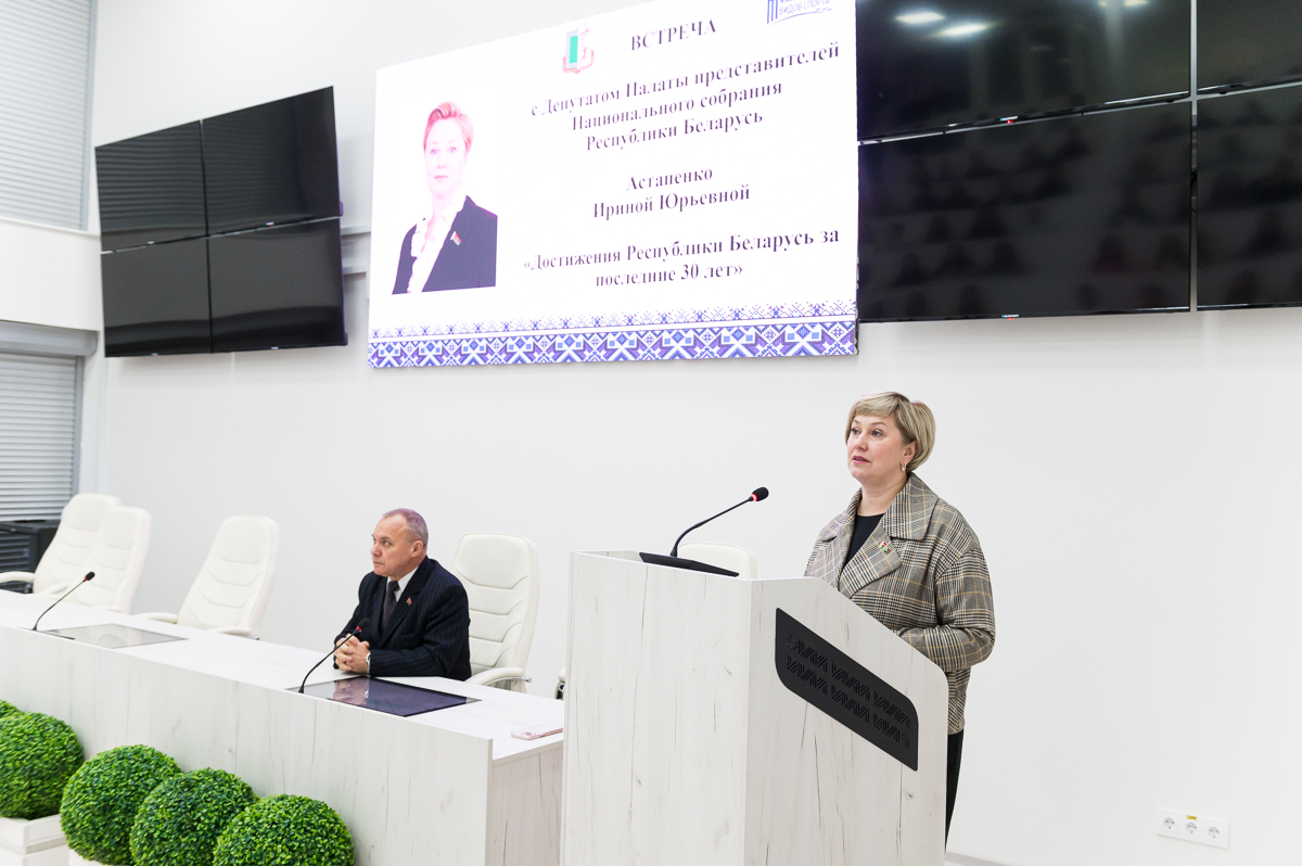 На спортивно-педагогическом факультете массовых видов спорта состоялась встреча с Депутатом палаты представителей Национального собрания Республики Беларусь Астапенко Ириной Юрьевной в рамках реализации информационно-просветительского проекта «Молодежь для Беларуси!».