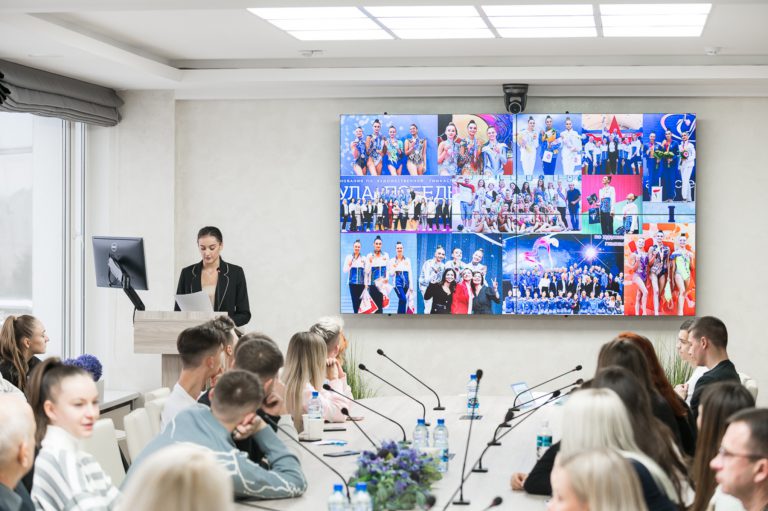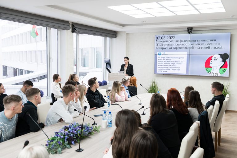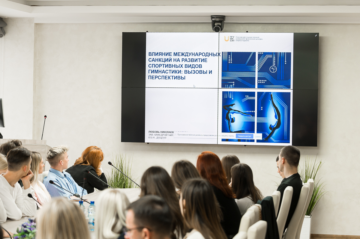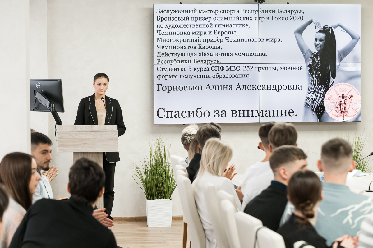 Спикером от белорусской стороны выступила Заслуженный мастер спорта Республики Беларусь по гимнастике художественной, бронзовый призер Олимпийских игр в Токио (2020), студент кафедры гимнастики Горносько Алина Александровна, которая презентовала доклад о современном состоянии развития художественной гимнастики в Республики Беларусь. Действующая спортсменка национальной команды страны уверенно отвечала на вопросы российских и белорусских коллег, продемонстрировав высокий уровень владения материалом.
