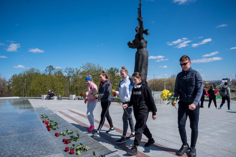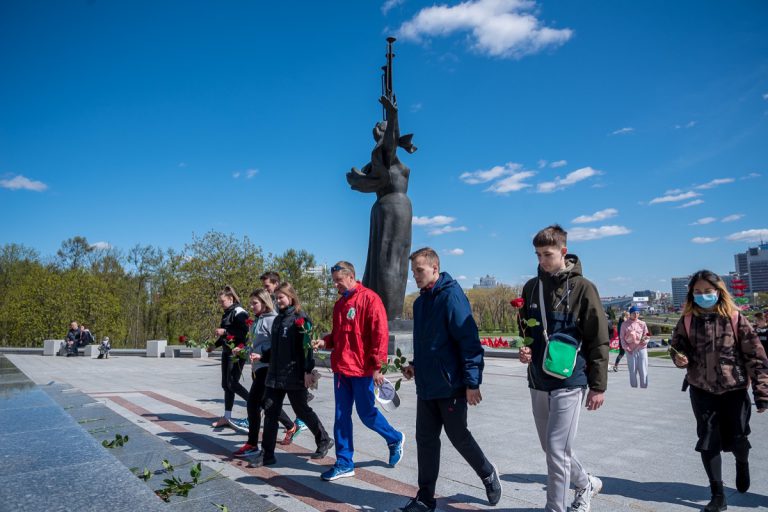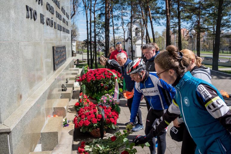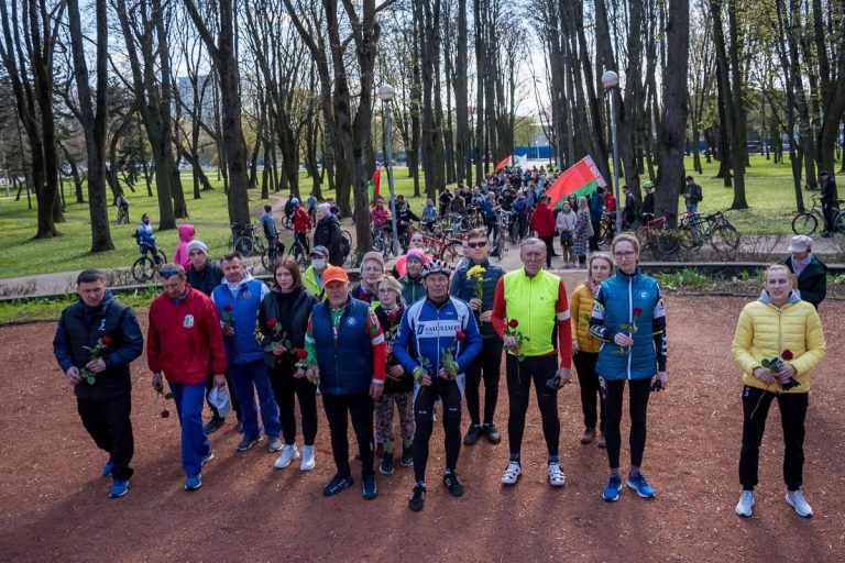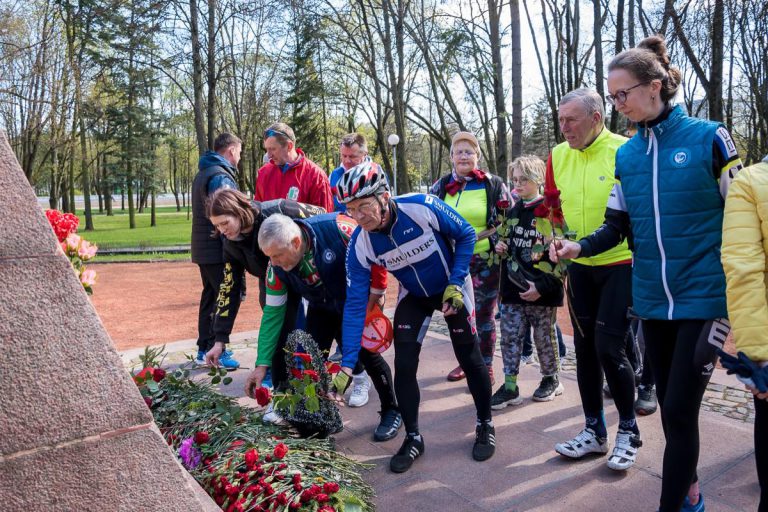 На протяжении всего маршрута к участникам велопробега присоединялись учащиеся учреждений образования Центрального района, также участникам велопробега рассказали о героях войны и их подвигах, памятных местах, после чего проходило возложение цветов к памятникам.