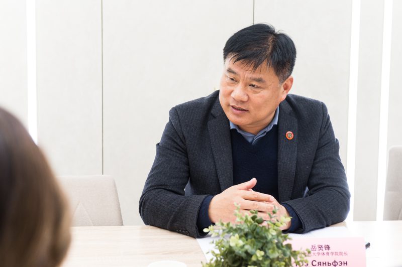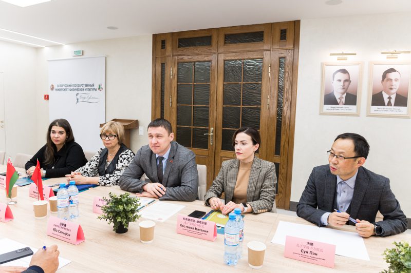 «С Хэнаньским педагогическим университетом мы сотрудничаем много лет. Мы тесно работаем с международным факультетом, и, конечно, нам будет приятно поработать с Институтом спорта, так как мы спортивный университет. У вас много студентов, которые занимаются спортом, мне посчастливилось на предыдущей встрече в Китае пообщаться с ними. Они мотивированы, им интересен наш университет, наша страна. Поэтому я уверен, что ваше пребывание в Беларуси и знакомство с Белорусским государственным университетом физической культуры позволит нам плодотворно сотрудничать друг с другом», — отметил первый проректор Владимир Владимирович Клинов.