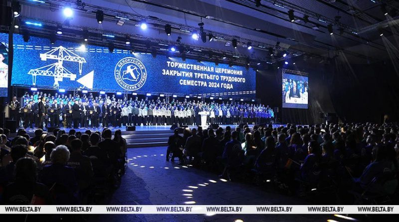 Представители студенческих отрядов со всей страны собрались на Всебелорусском слете во Дворце спорта 13 декабря. Здесь состоялась торжественная церемония закрытия третьего трудового семестра. Участие в ней принял Президент Беларуси Александр Лукашенко.