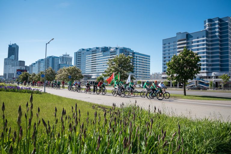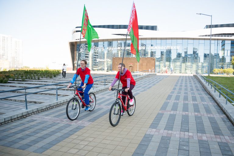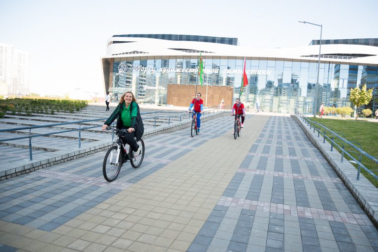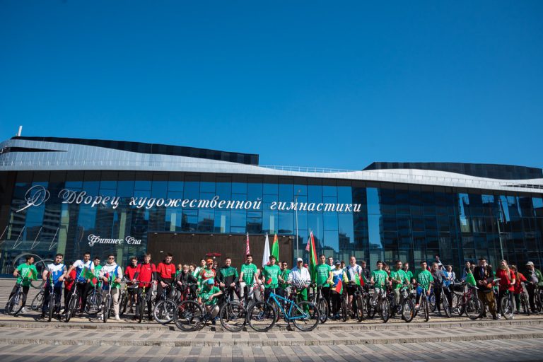 Маршрут велопробега включал ближайшие знаковые спортивные объекты: БГУФК – НОК – Дворец художественной гимнастики – Минск-арена – БГУФК.