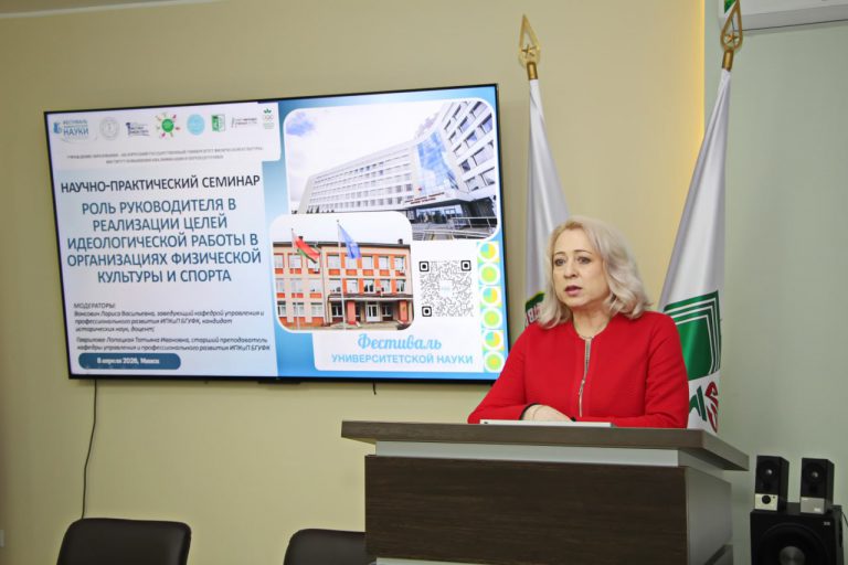 8 апреля в Институте повышения квалификации и переподготовки БГУФК в рамках Фестиваля университетской науки состоялся научно-практический семинар «Роль руководителя в реализации целей идеологической работы в организациях физической культуры и спорта», организованный кафедрой управления и профессионального развития ИПКиП.