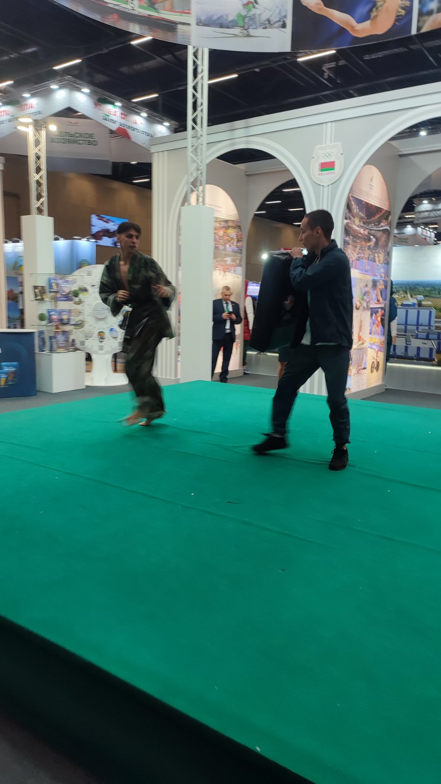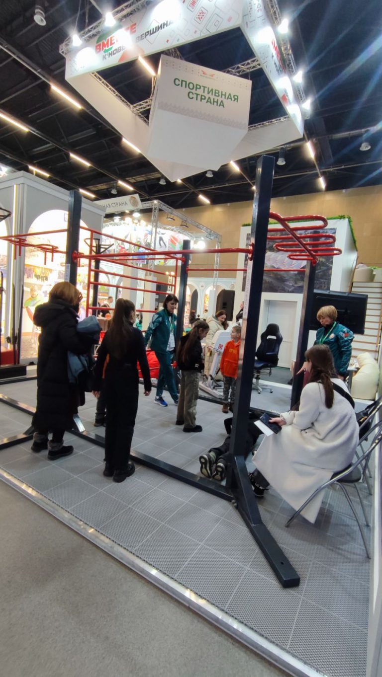 Спортивная зона — одна из самых интересных на выставке достижений в Минском международном выставочном центре «БелЭкспо». Тут можно покататься на горке, поиграть в бадминтон и настольный теннис, испытать себя на тренажерах, а также в стрельбе.